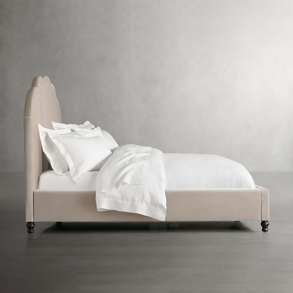 Timeless Elegance with Modern Flair: Features a charming scalloped silhouette paired with soft curves and exquisite channel-stitched detailing, blending traditional aesthetics with contemporary design. The beige velvet upholstery adds a luxurious touch, elevating the ambiance of any bedroom—from cozy family spaces to sophisticated master suites.