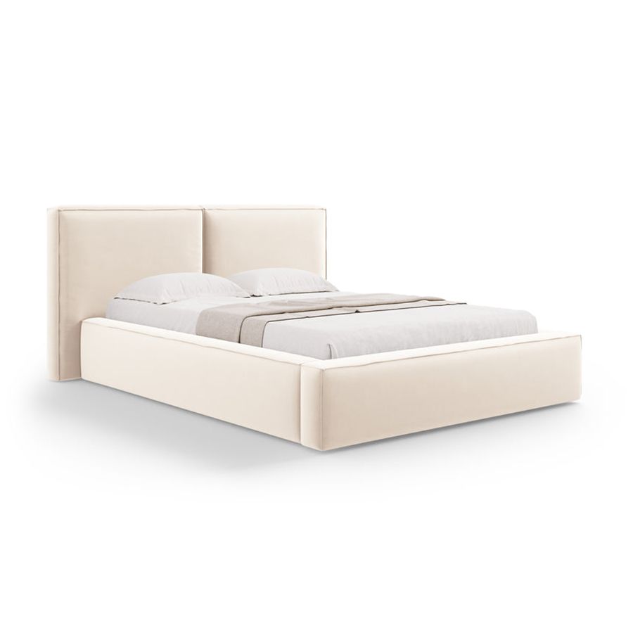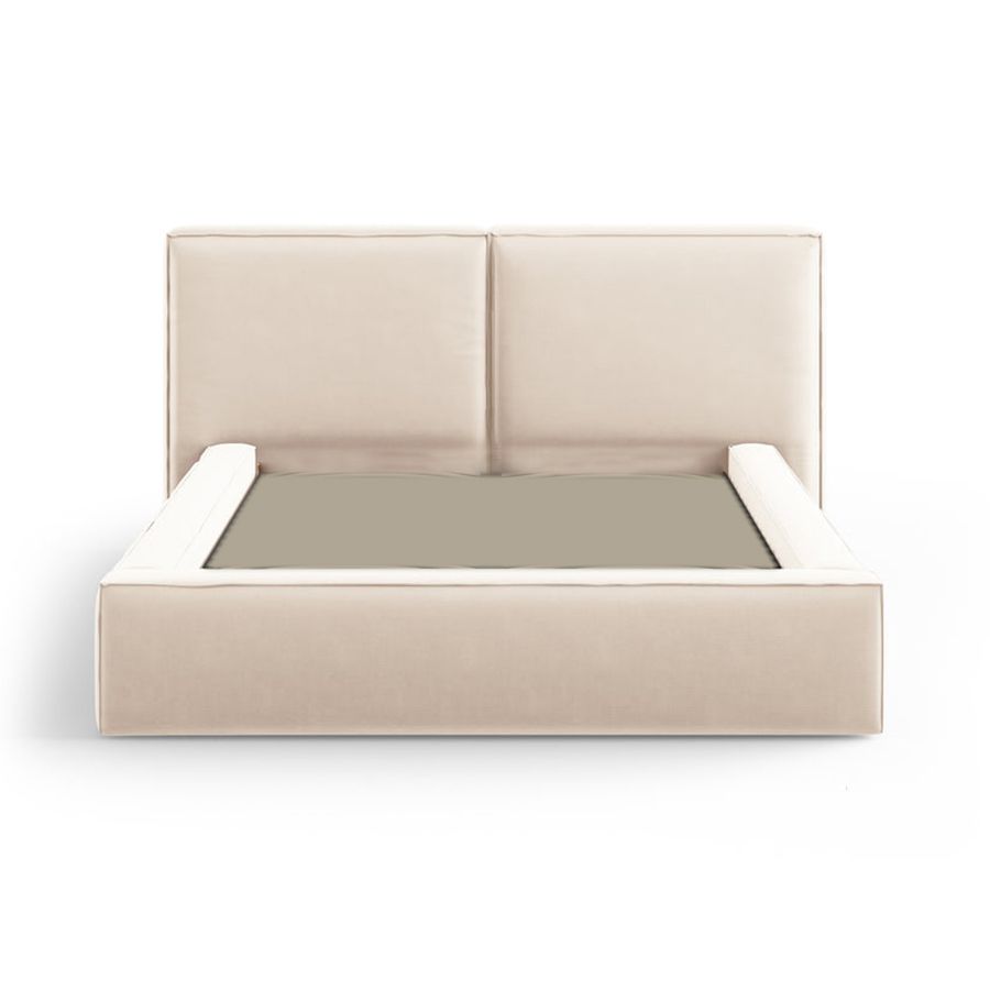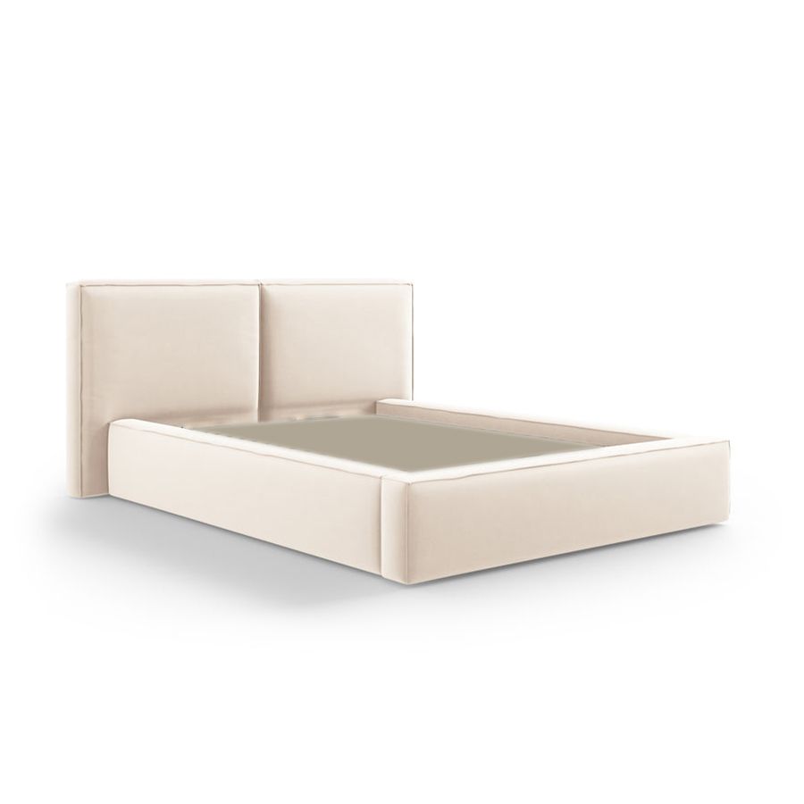 Maple Home Velvet Bed Frame Stylish Upholstered Design for Modern & Classic Bedrooms (Beige Super King Size 200*200cm) - 6 Months Warranty