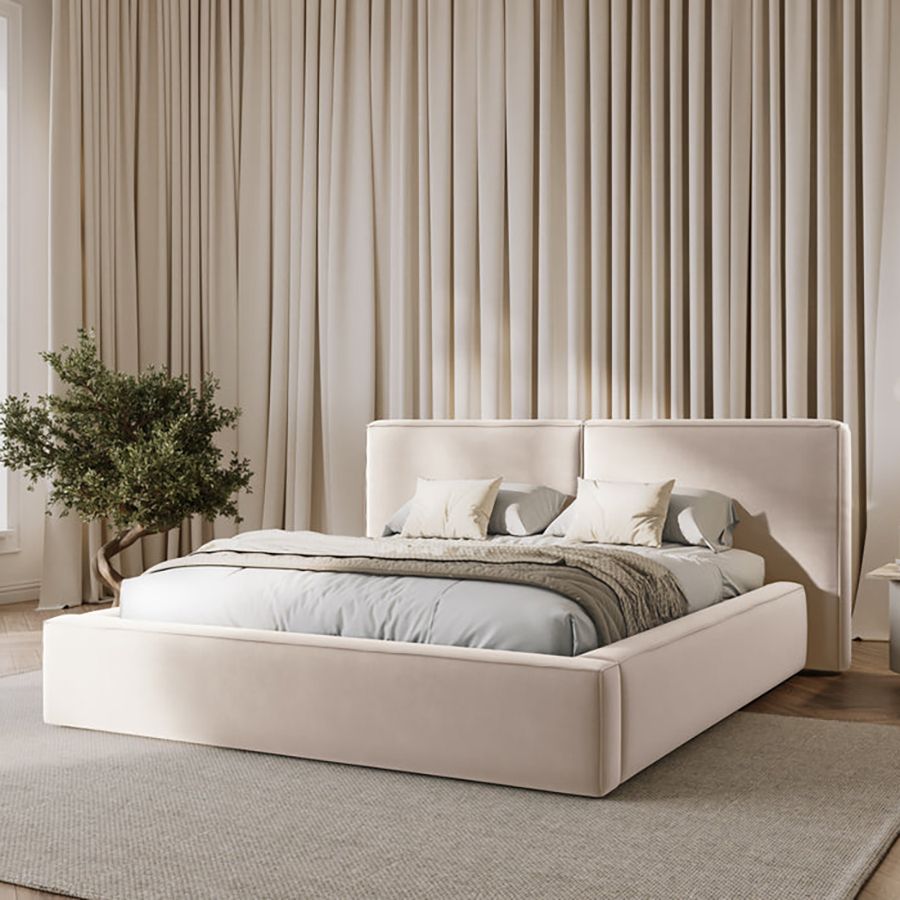 Premium Velvet Upholstery: Made of high-quality velvet with a smooth, soft, skin-friendly texture and slight wear resistance. It has a subtle sheen that gently catches light, adding understated luxury to the bedroom without being overly flashy.
