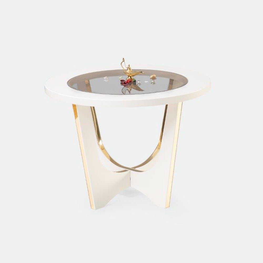 Marquis Medium Size End Table-White / Glass / Golden