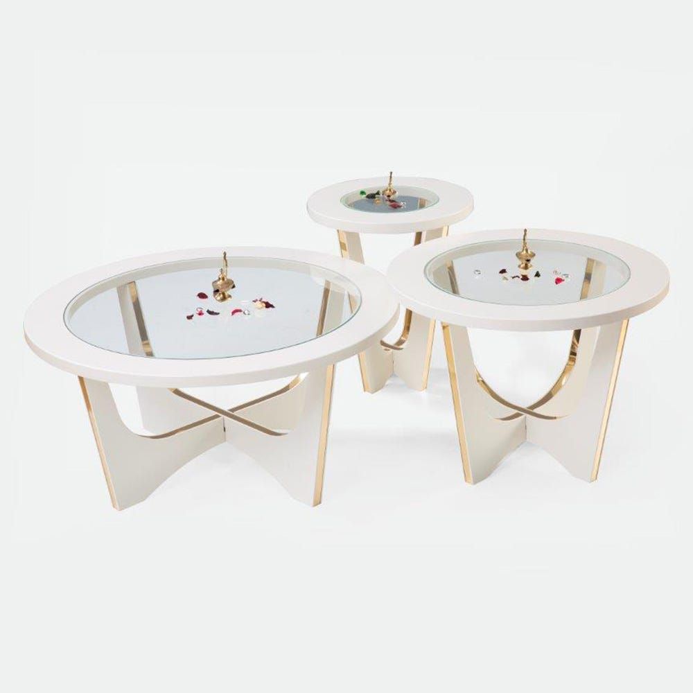 •Golden linings on the table base compliments with its white color making it more beautiful