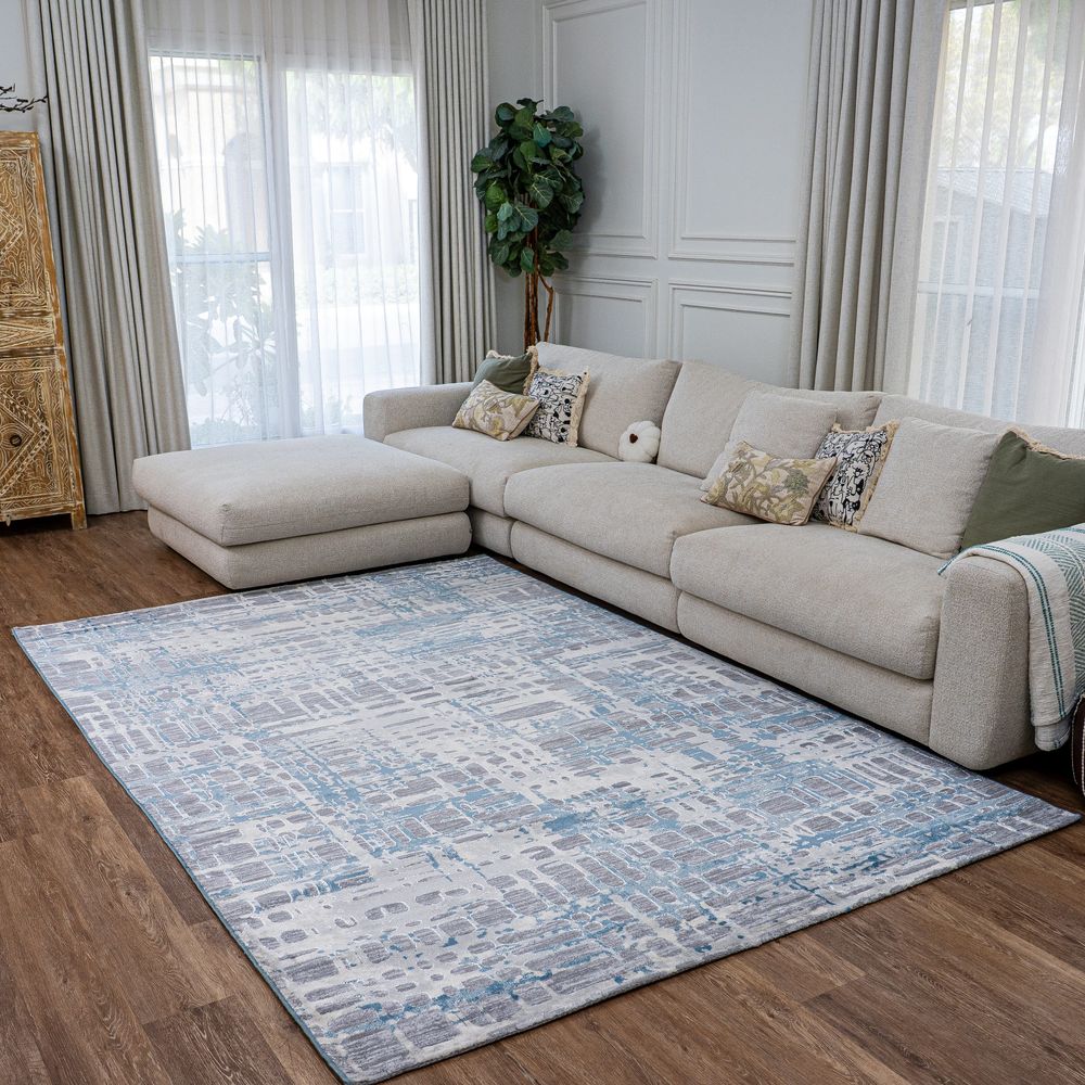 Marvel Rug-Abstract Style-Grey-Azure Blue-150 x 230 cm (4.9 x 7.5 ft)