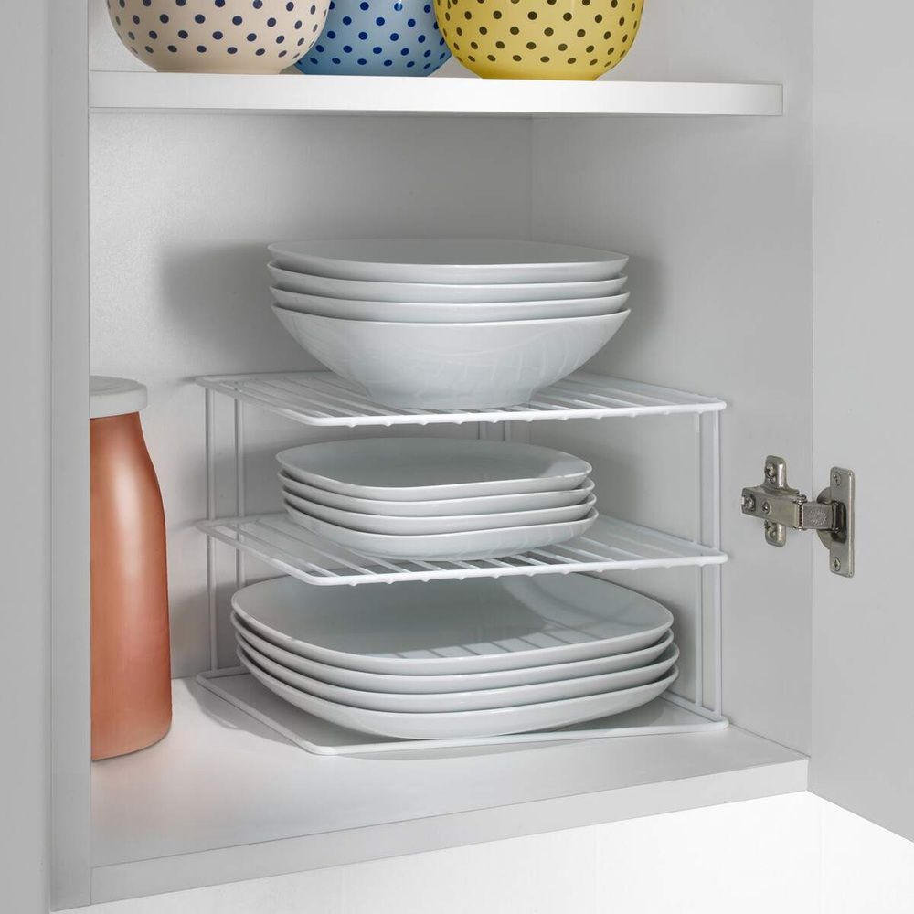 Metaltex Corner Rack Silos – 2-Tier Plate & Bowl Organizer – Space-Saving Corner Cabinet Insert – Sturdy Coated Wire, Made in Italy