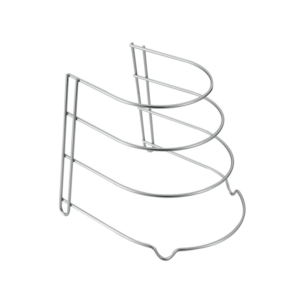 Metaltex Frypan Holder Canyon Silver – 4-Seat Frying Pan Organizer – Countertop, Cabinet, or Drawer Storage – Iron Wire Body with Polytherm® Metallic Coating