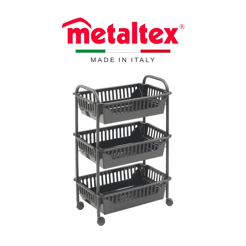 Metaltex Oslo 3-Layer Multi-Purpose Storage Basket – Rolling Cart with 360° Spinner Wheels, Touch-Therm® Coating & PP Baskets – LAVA