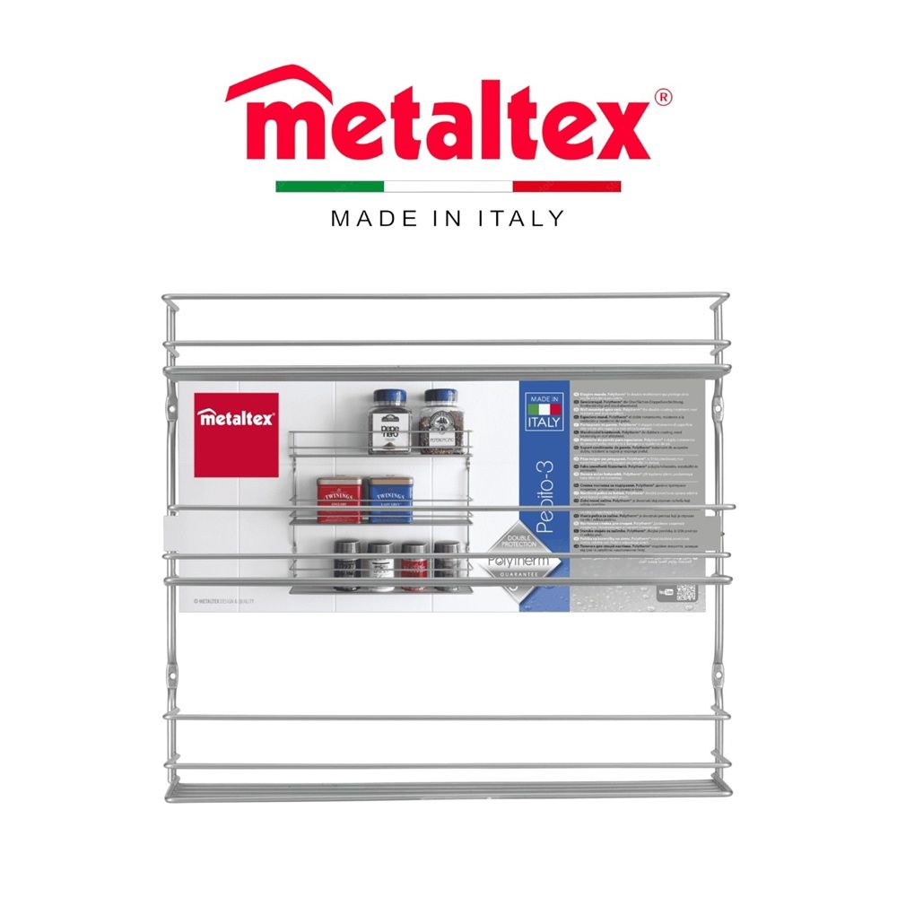 Metaltex Spice Rack Pepito – 3-Layer Wall or Cabinet Mounted Organizer – Polytherm Coating, Rust-Resistant, Made in Italy