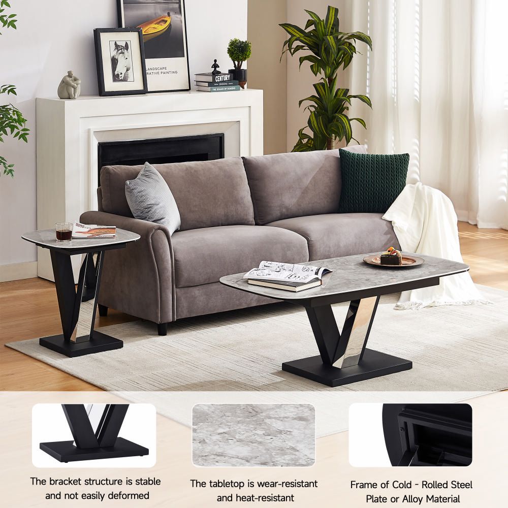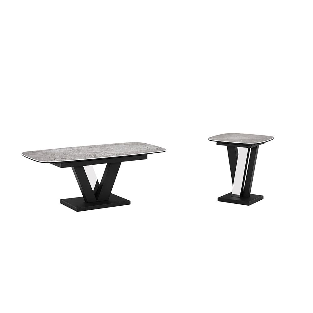 Midland Stone Top Coffee Table -High Gloss Grey/Black