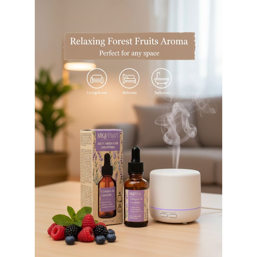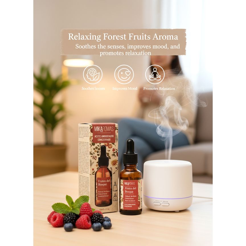 Bring the vibrant, juicy aroma of forest berries into your home with the Mikaromas Fragrance Oil – Fruit of the Forest, 30ml