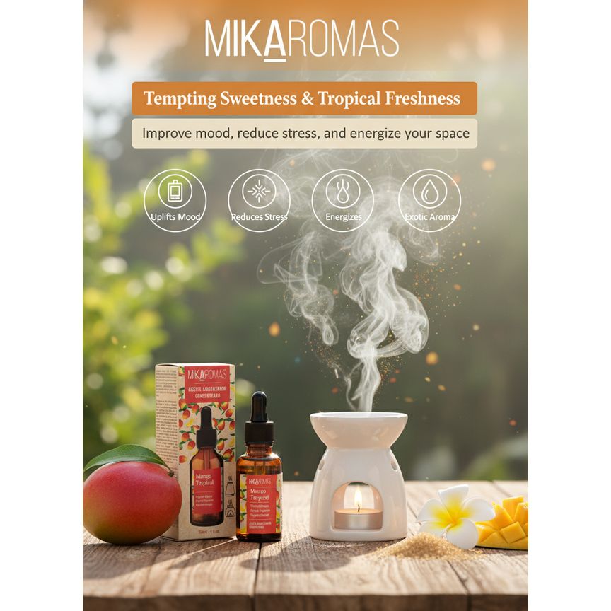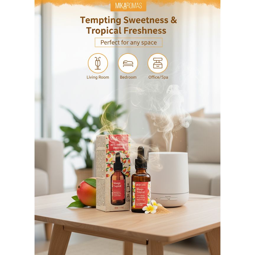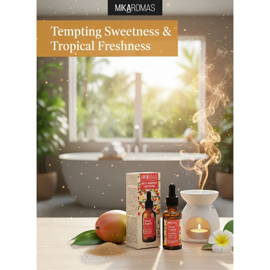 Bring the essence of summer into your home with the Mikaromas Fragrance Oil – Tropical Mango, 30ml