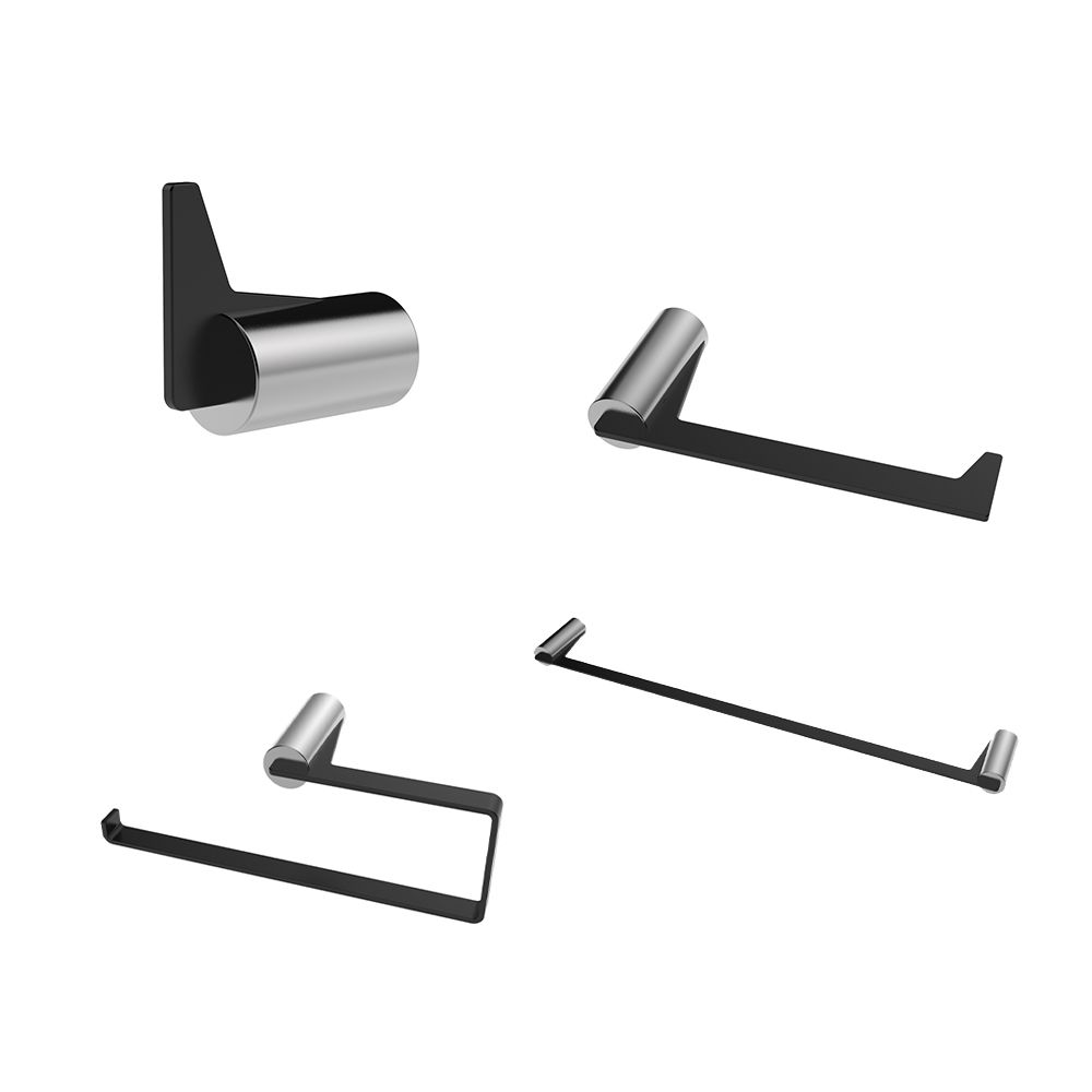Milano Luxe Linen Bathroom Accessories 4Pcs Set Matt Black +Chrome