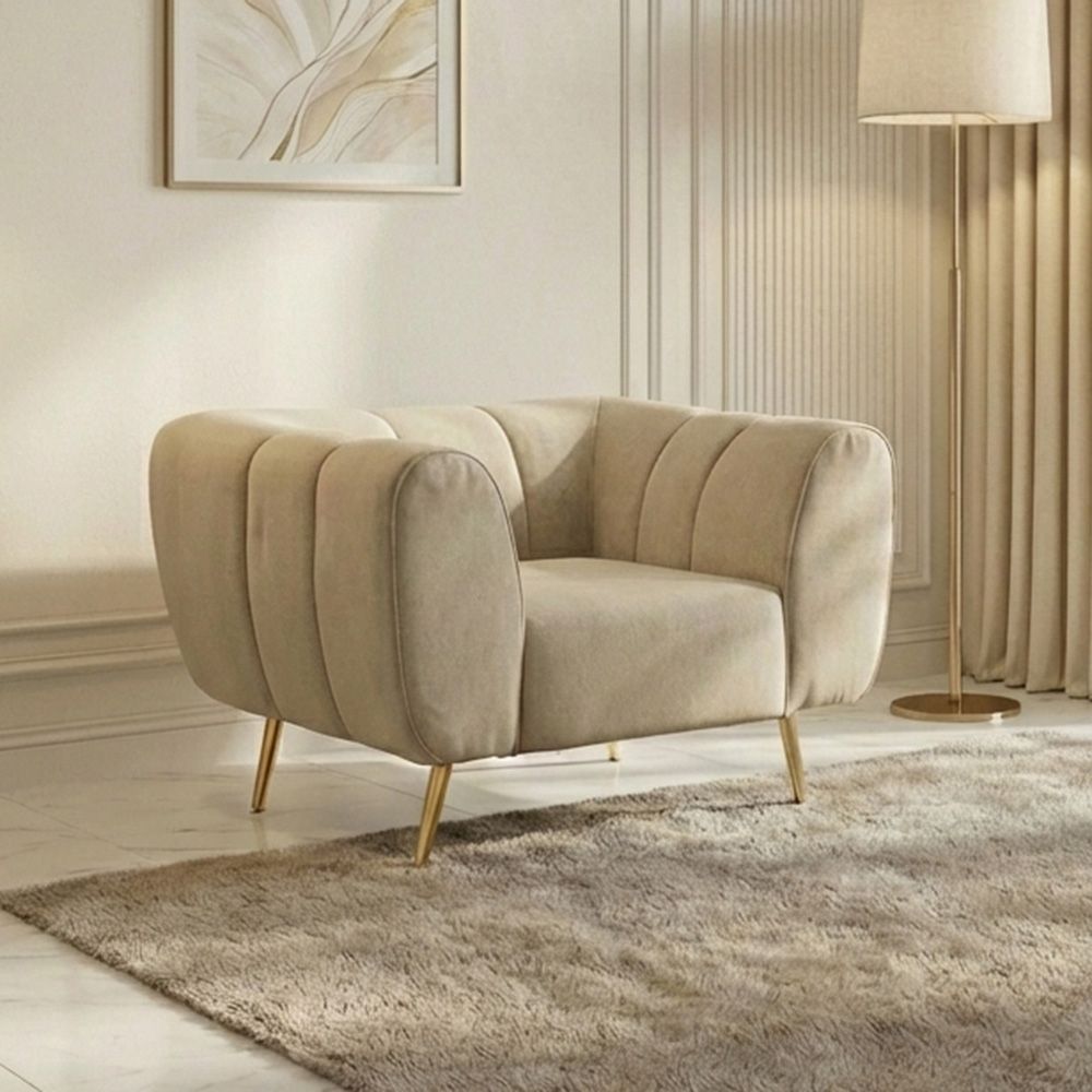 Its clean-lined silhouette and muted beige fabric upholstery offer a timeless aesthetic that complements every décor style.