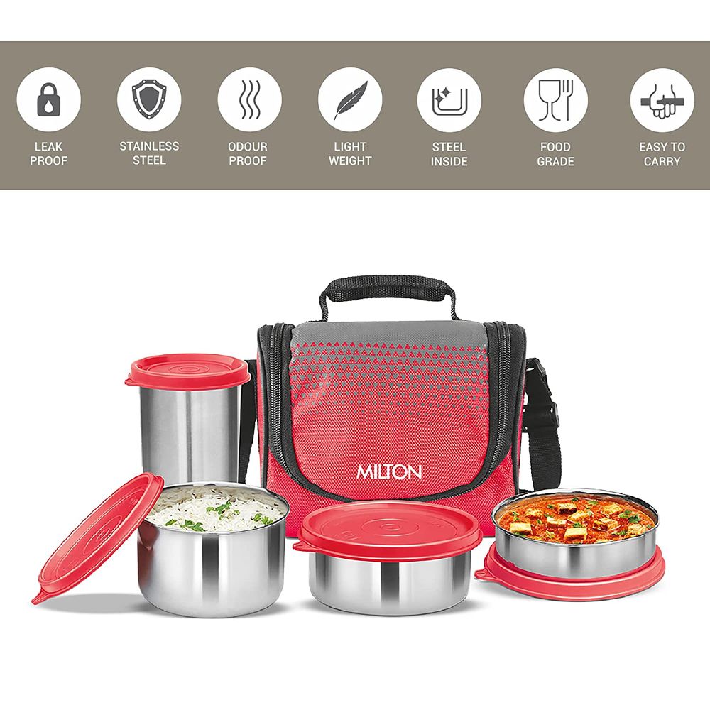 Milton Tasty 3 Stainless Steel Containers Combo Lunch Bag with Tumbler, Red