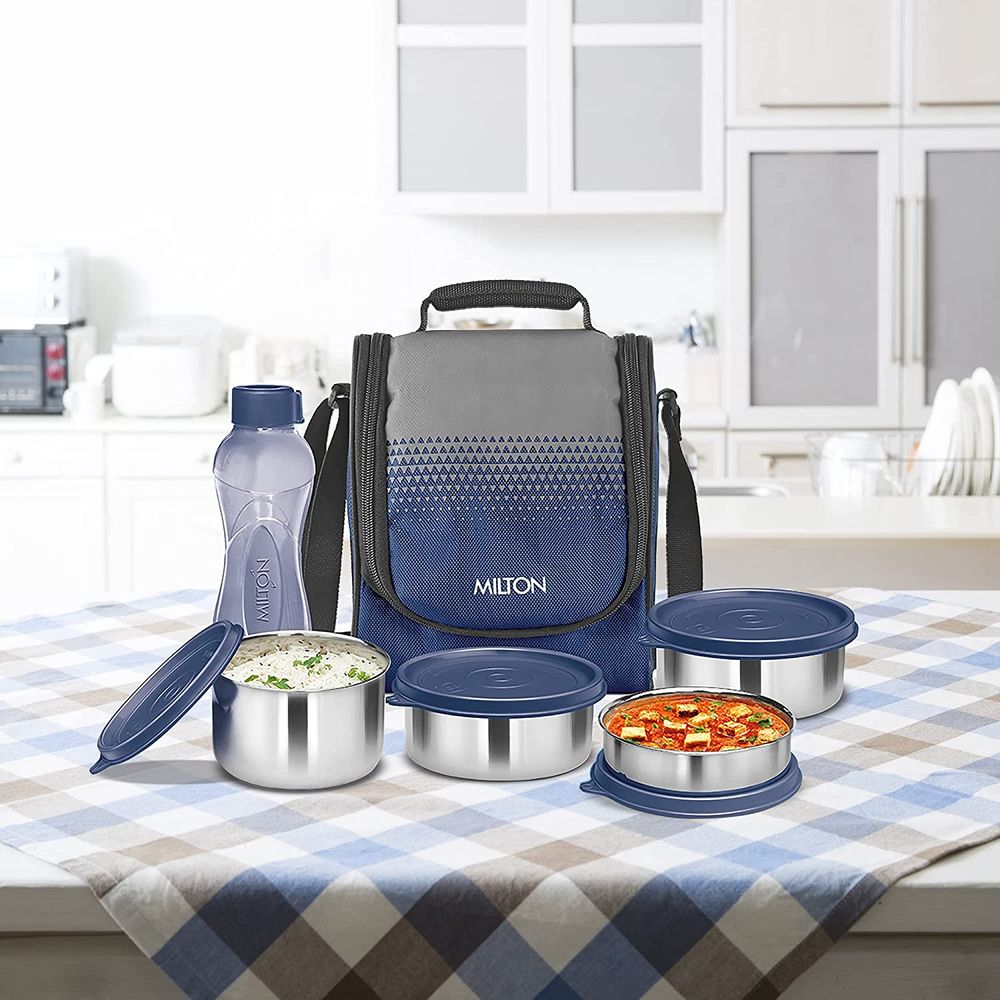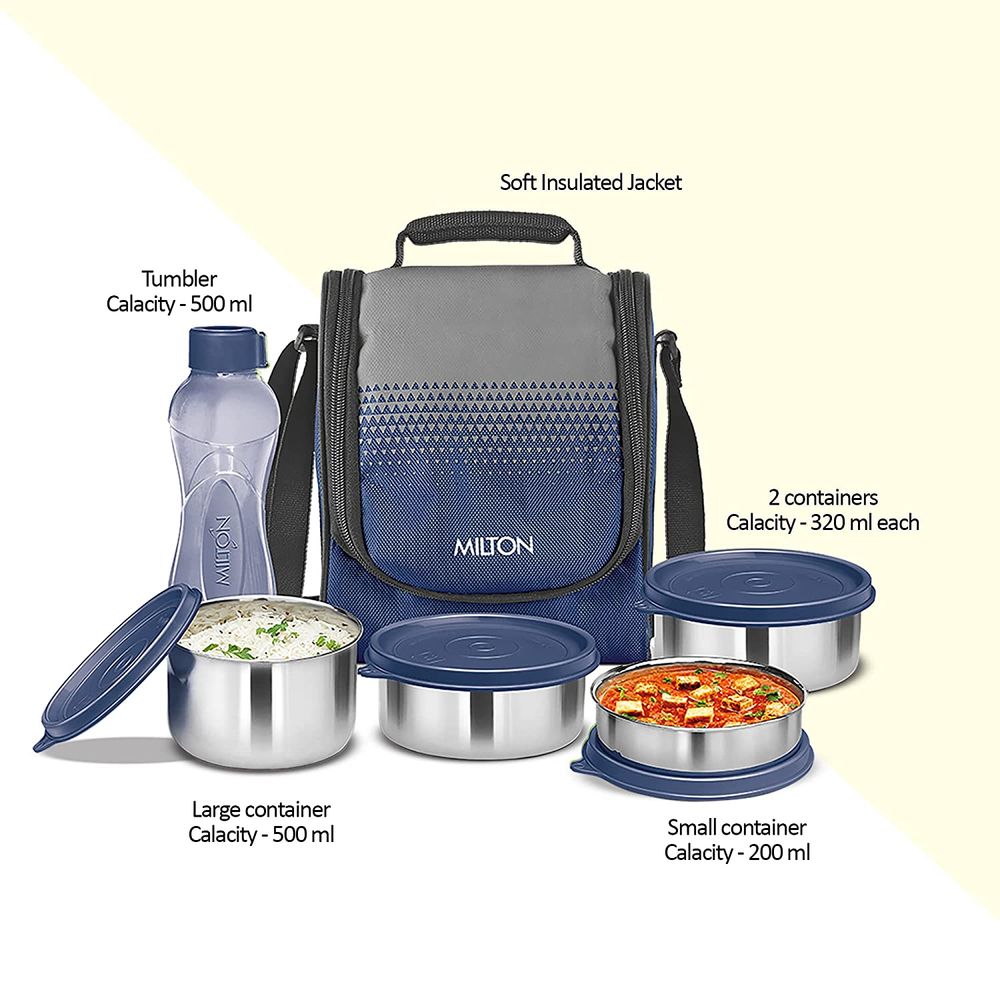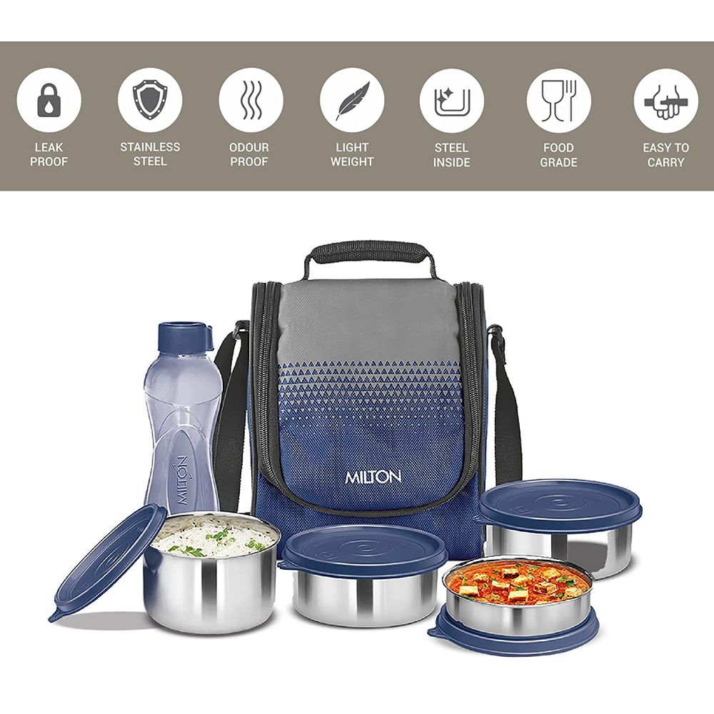 Milton Tasty 4 Stainless Steel Containers Combo Lunch Bag with Bottle, Blue