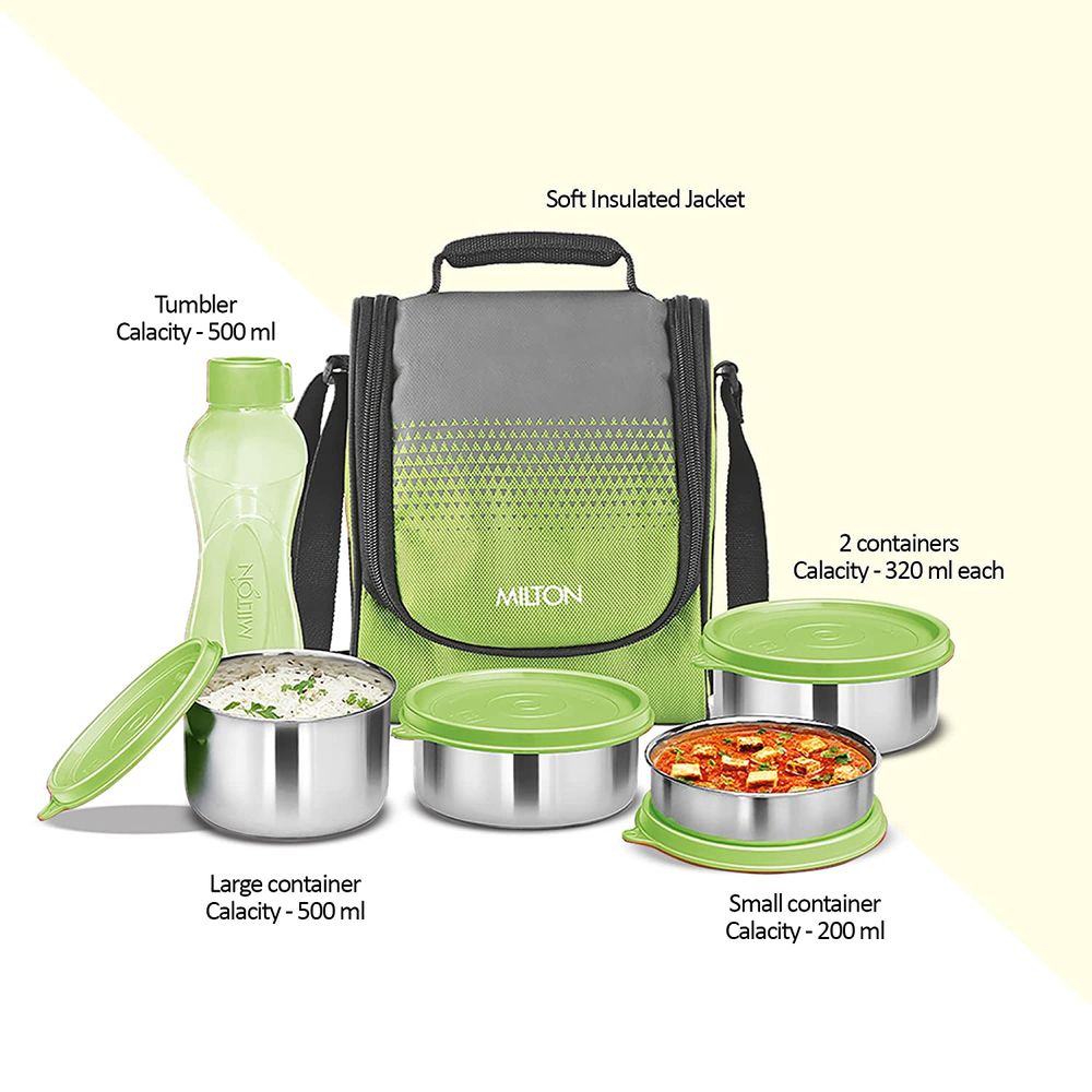 Milton Tasty 4 Stainless Steel Containers Combo Lunch Bag with Bottle, Green