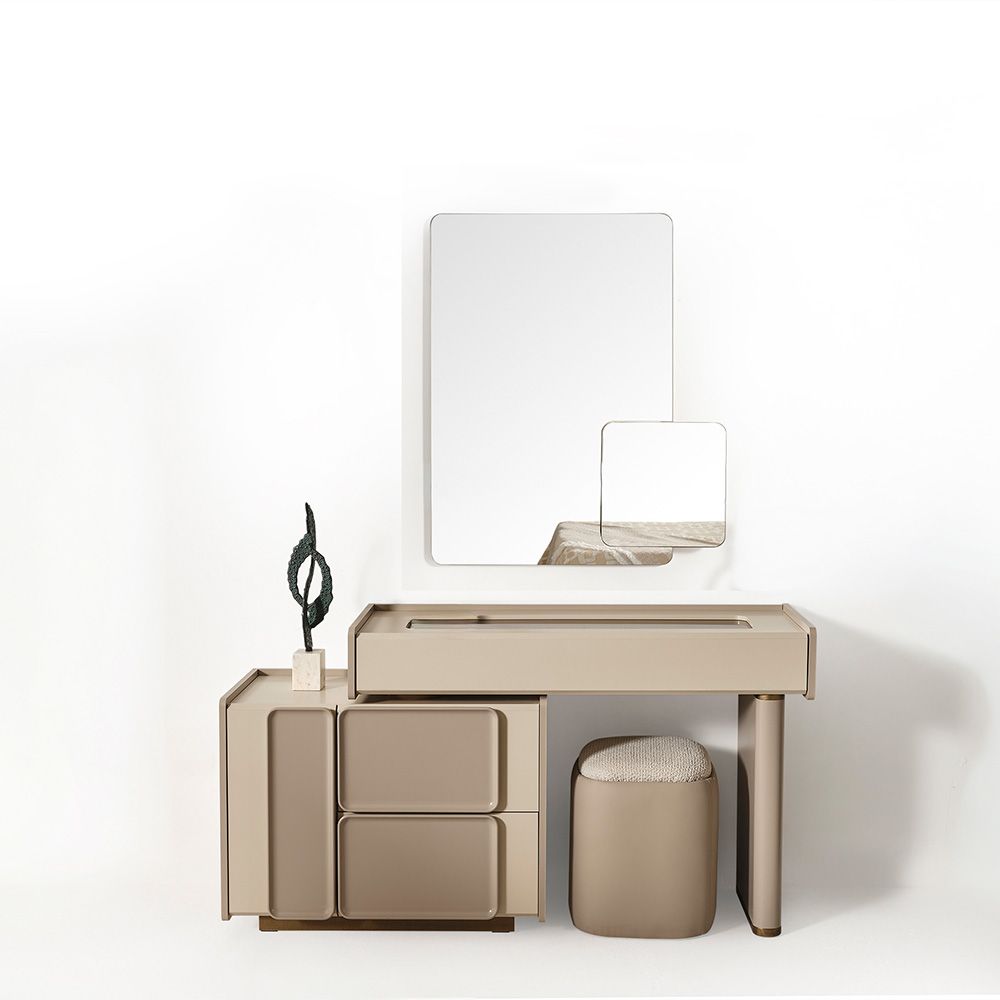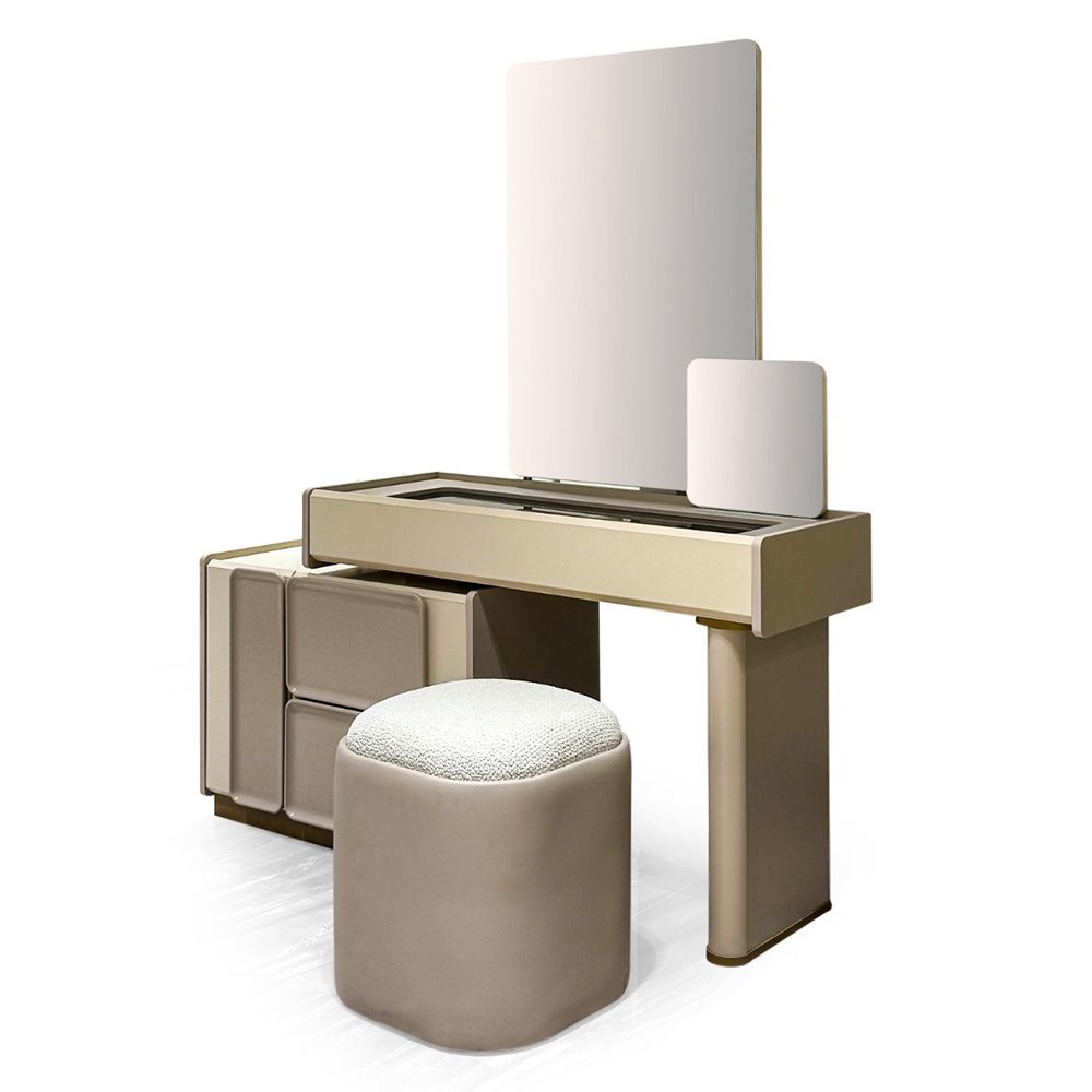 The product Mirante 200X200 Super King Bed With 2 Night Stand And Dresser With Mirror + Stool - Grey images have props used for illustrative purposes. Product Color may vary slightly due to photographic lighting or your screen settings.