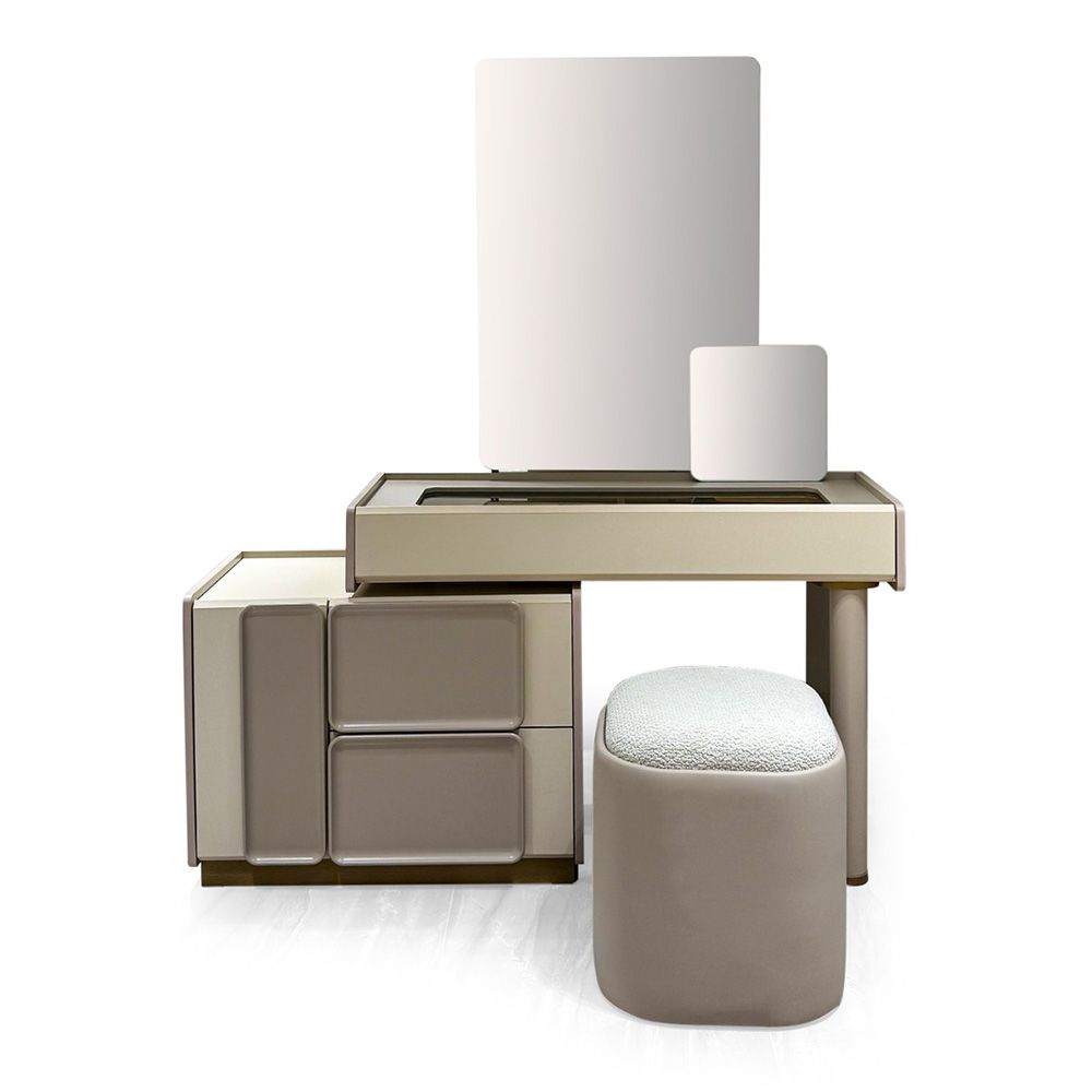 Mirante 200X200 Super King Bed With 2 Night Stand And Dresser With Mirror + Stool - Grey