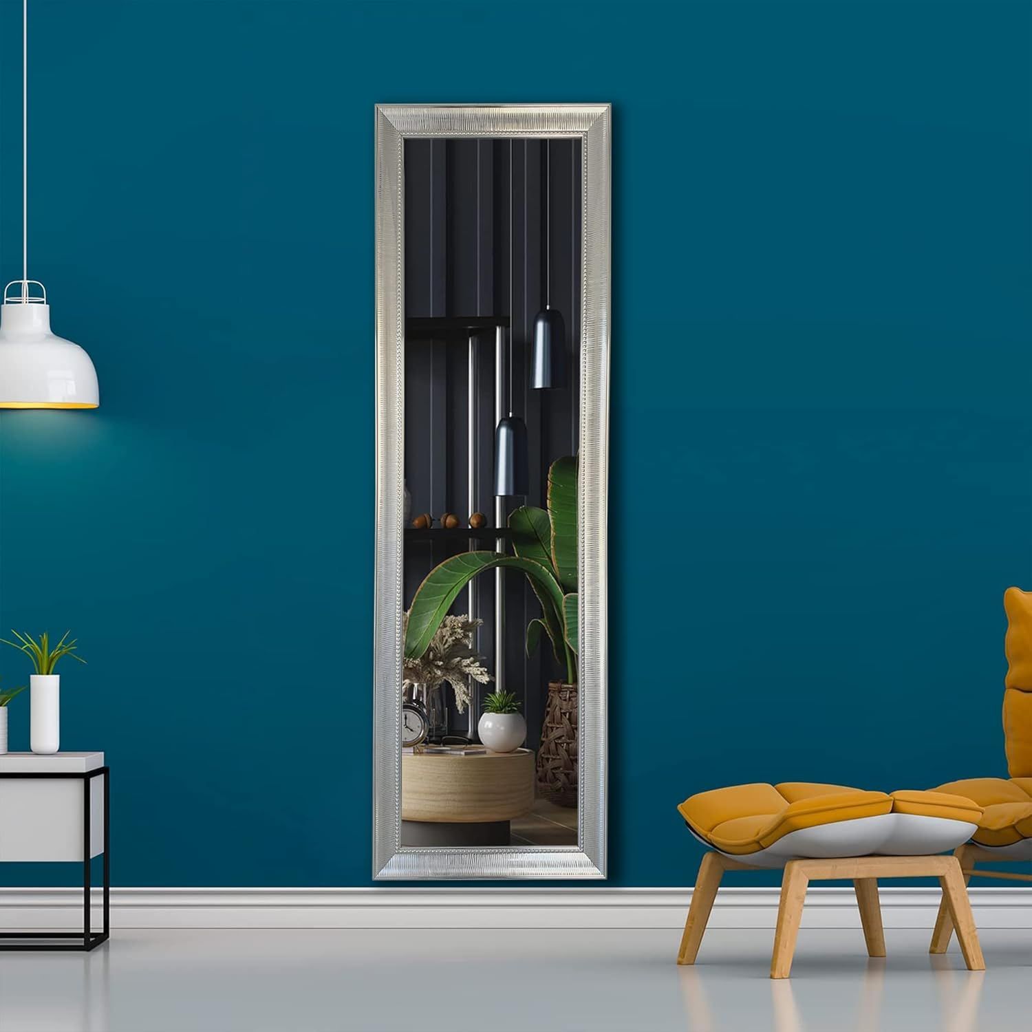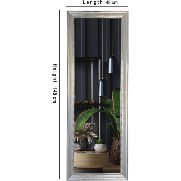 Mirror Full Length Stand 148cm x 48cm Standing Hanging or Leaning Against Wall, Home Decor, Large Rectangle Bedroom Mirror Floor Mirror Dressing Mirror Wall-Mounted Mirror, PVC Frame - Silver