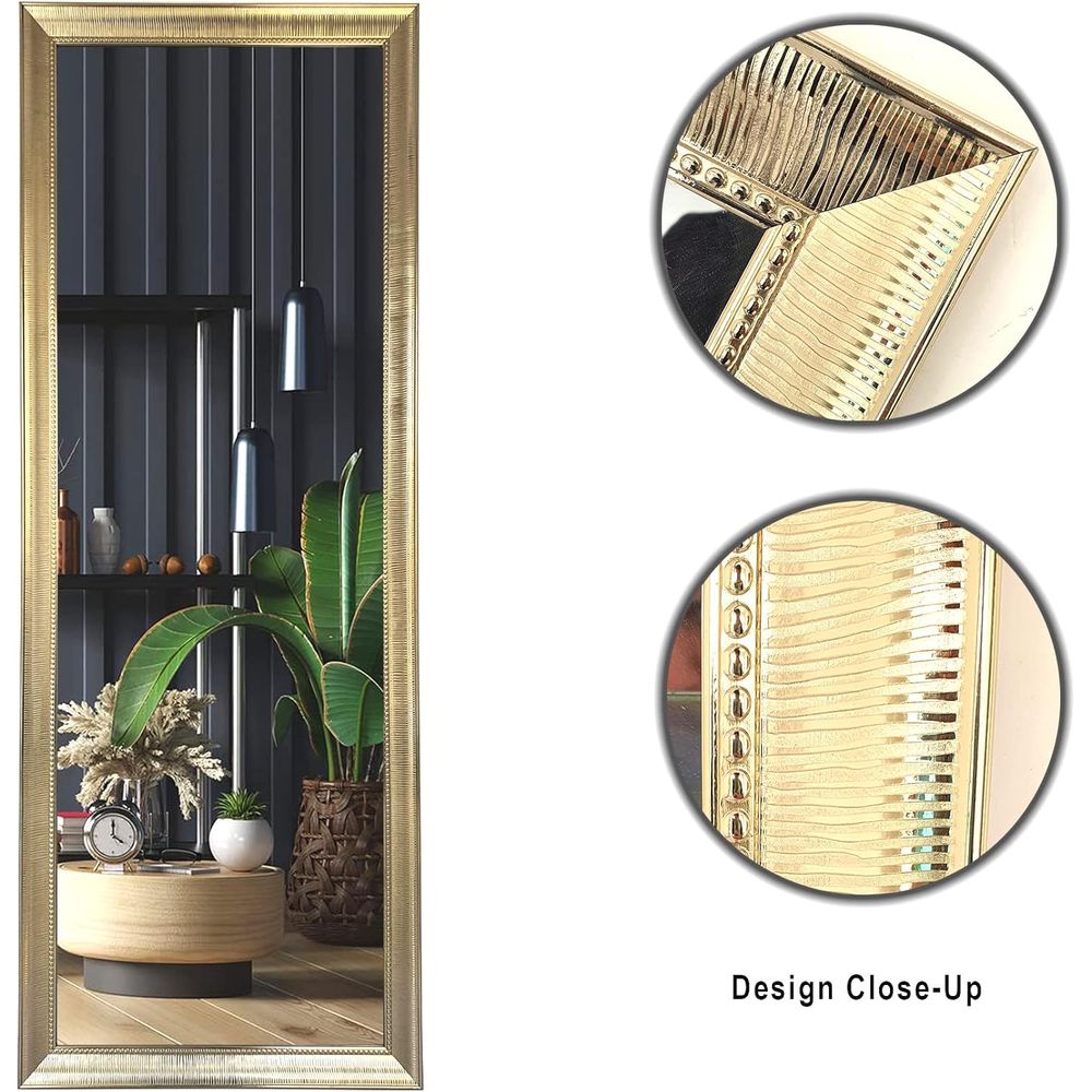 Mirror Full Length Stand 160cm x 60cm Standing Hanging or Leaning Against Wall, Large Rectangle Bedroom Mirror Floor Mirror Dressing Mirror Wall-Mounted Mirror, PVC Frame - Golden