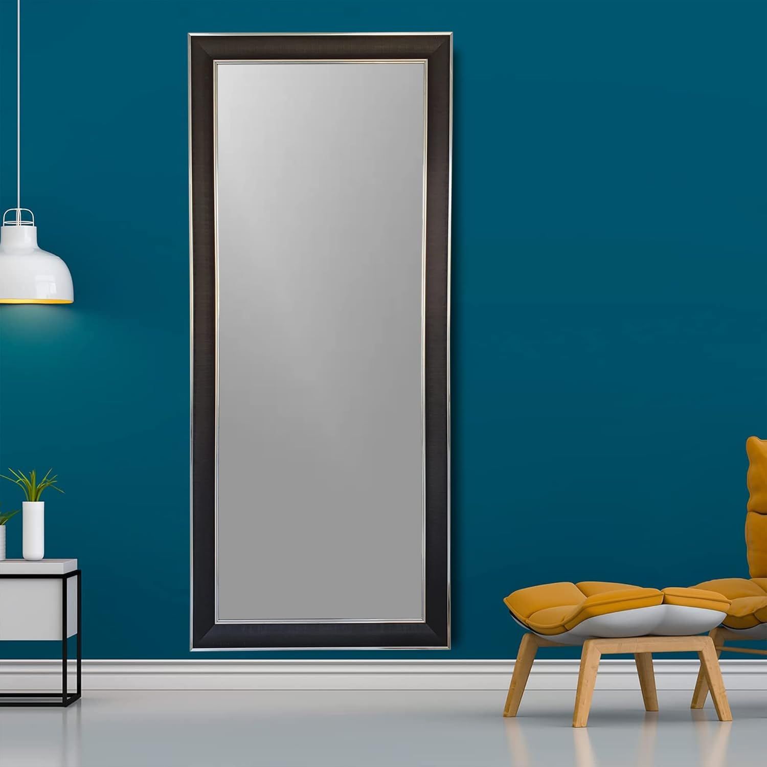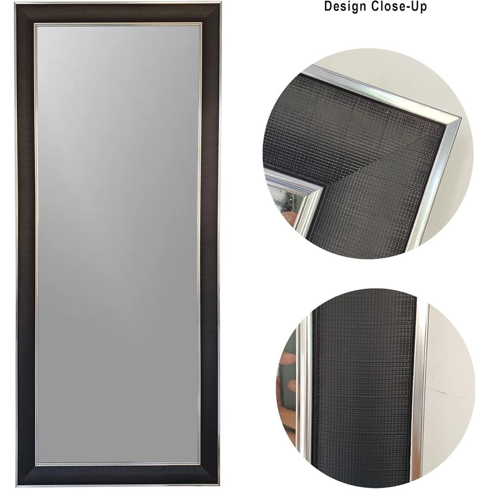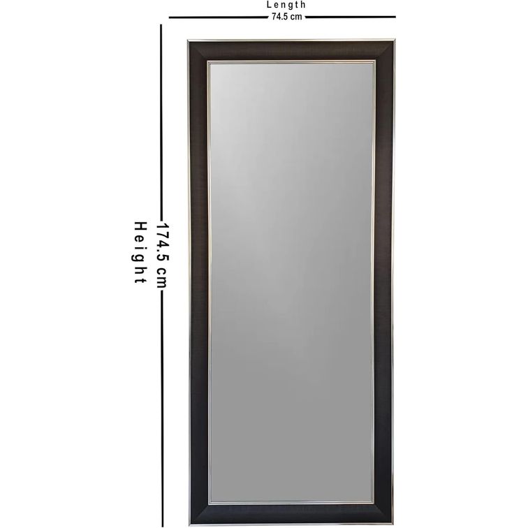 Mirror Full Length Stand 174.5cm x 74.5cm Standing Hanging or Leaning Against Wall, Large Rectangle Bedroom Mirror Floor Mirror Dressing Mirror Wall-Mounted Mirror, PVC Frame - Black Silver
