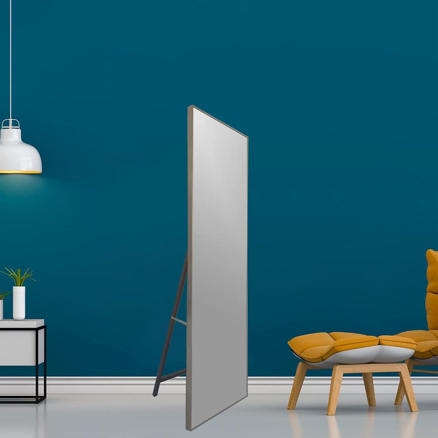 Mirror Full Length Stand | Aluminum Frame 141cm x 41cm | Wall Home Decor, Wall Frame for Living Room, Floor Mirror, Dressing Mirror, Wall Mounted Mirror | Silver Color