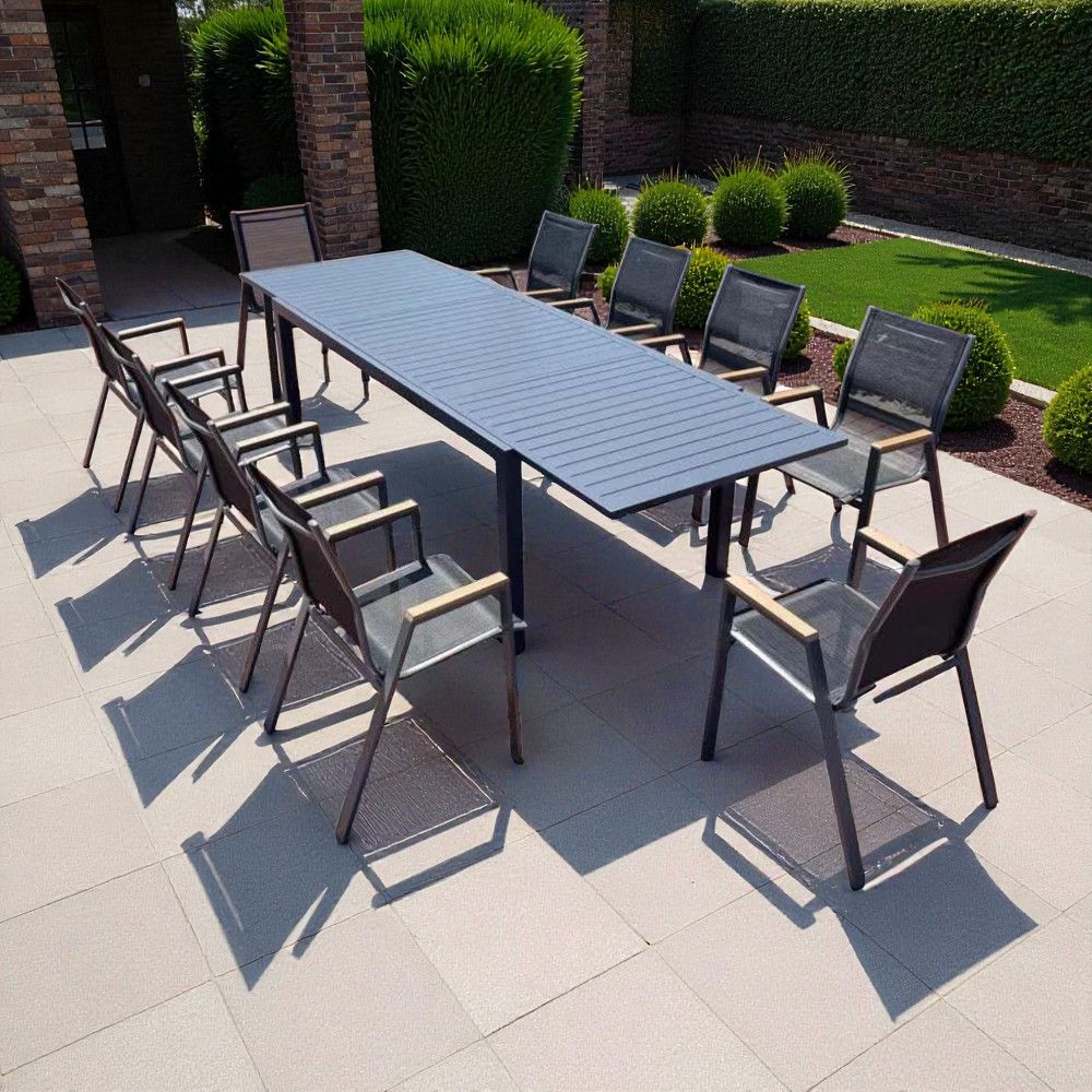 Modern Aluminium Outdoor Dining Set – 10-Seater with Aluminium Extendable Table & Textilene Chairs