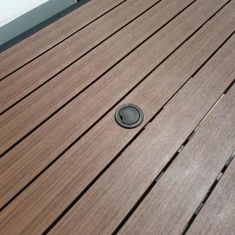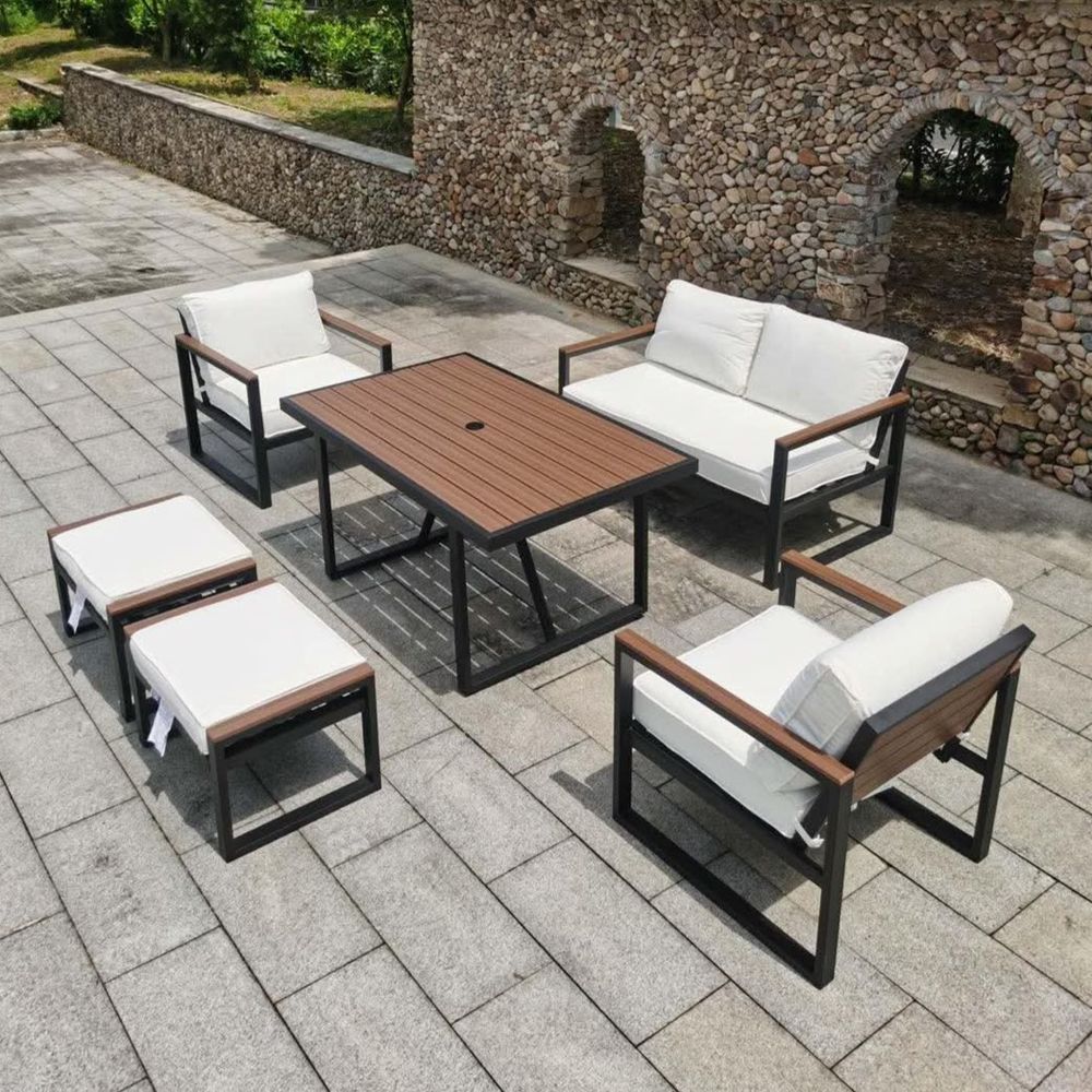 Modern Aluminium Outdoor Garden Set – Black Frame with Faux Teak Finish, Beige & White Cushions