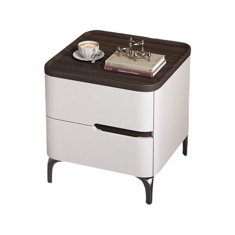 Modern Bedside Table with Storage Drawers, Wooden Top, White and Dark Brown Bedroom Nightstand Table 50cm Width.
