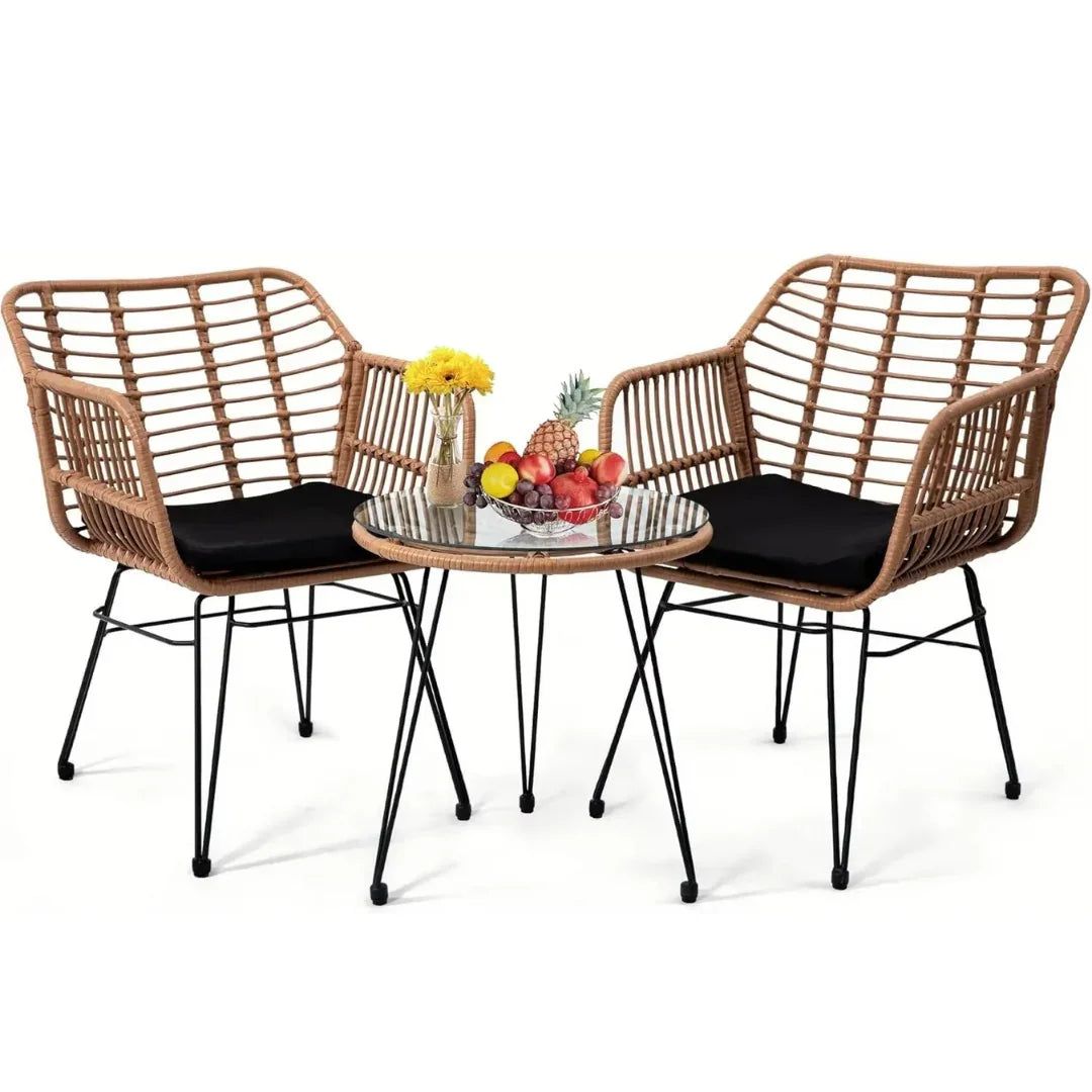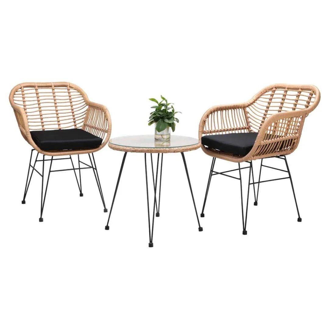 Bring stylish comfort and timeless charm to your outdoor spaces with the Wooden Twist Modern Bistro Rattan Outdoor Chair Table Set