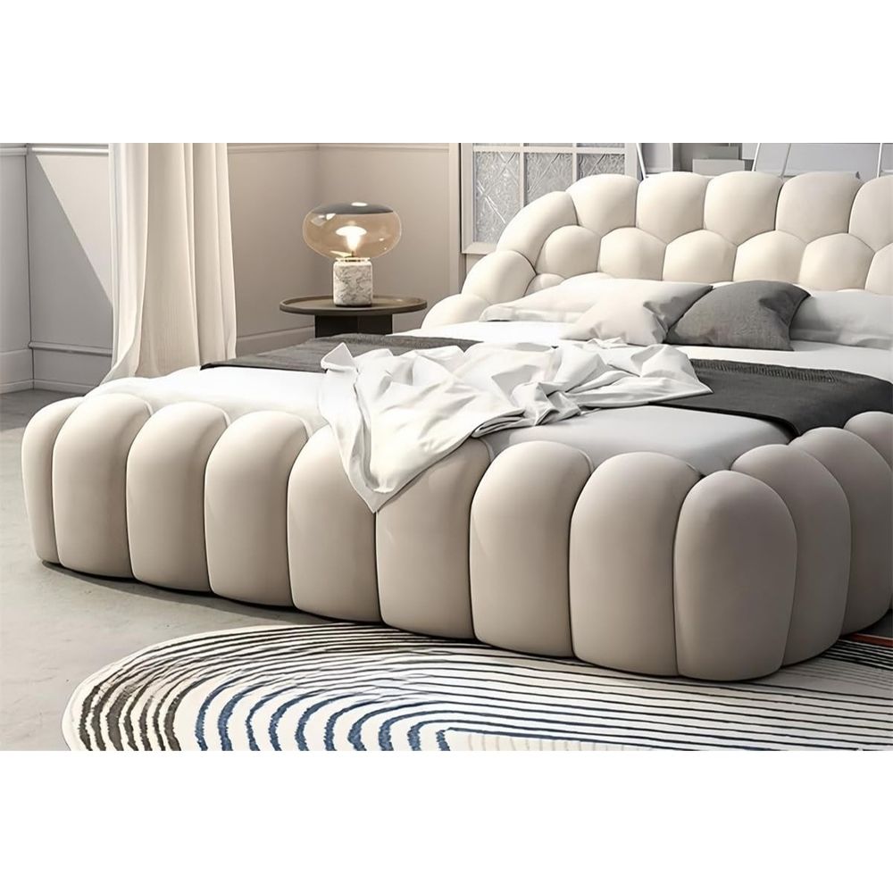 Elevate your bedroom with this modern cloud-style upholstered bed featuring a plush, bubble-inspired design.
