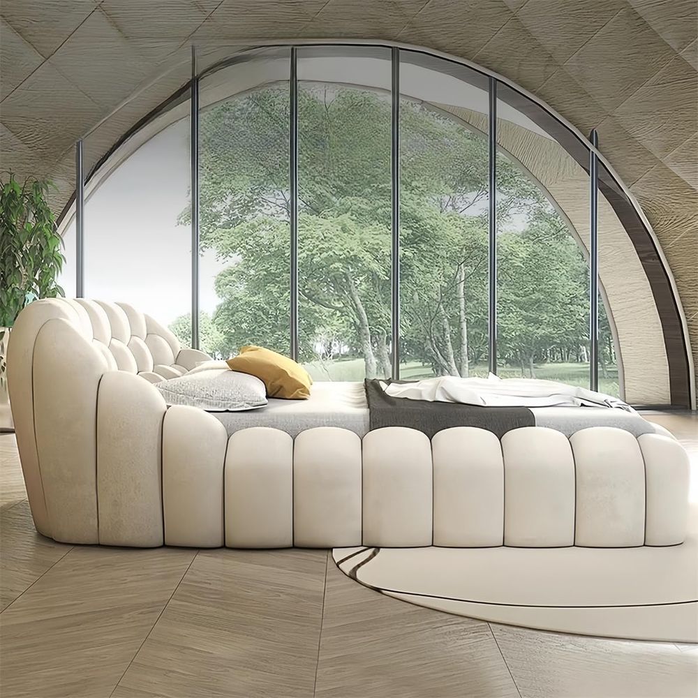 Modern Cloud Tufted Upholstered Bed – Curved Bubble Design – Beige Velvet – Luxury Contemporary Bedroom Furniture – Super King Size Bed 200 × 200