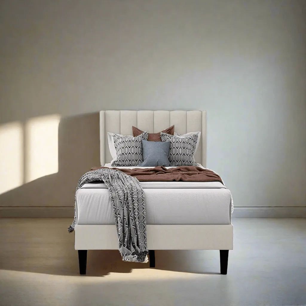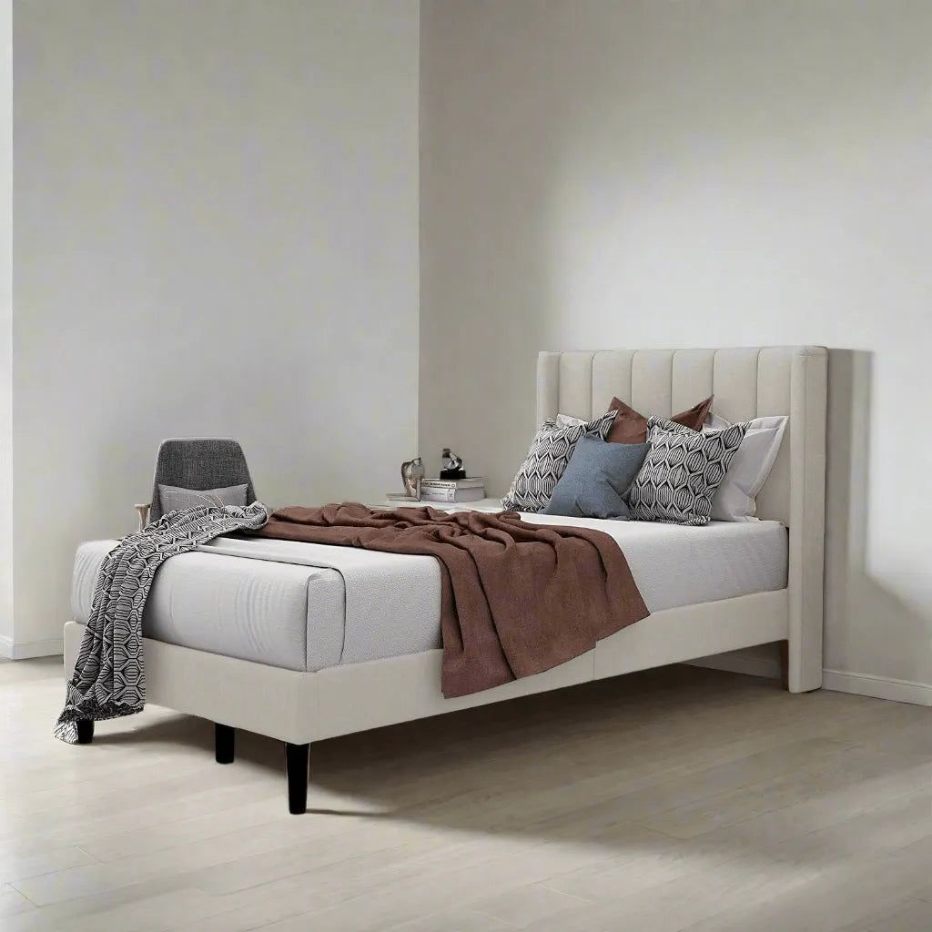 Modern Rectangular Velvet Upholstery Bed with Soft Wingback Headboard Beige (Twin)