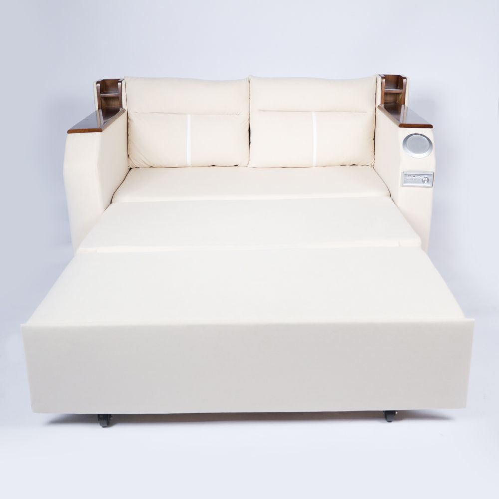 Modern Smart Sofa Bed -Multi Functions -With Bult-in Storage Space - Bluetooth Speaker - USB Ports 150Cm - Off White