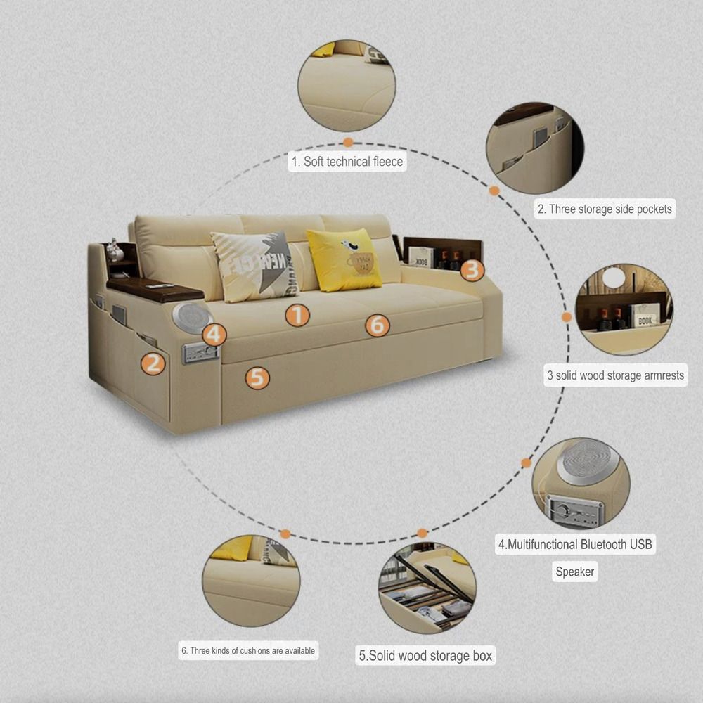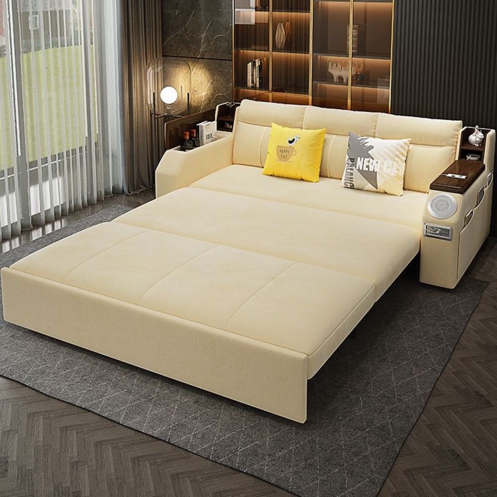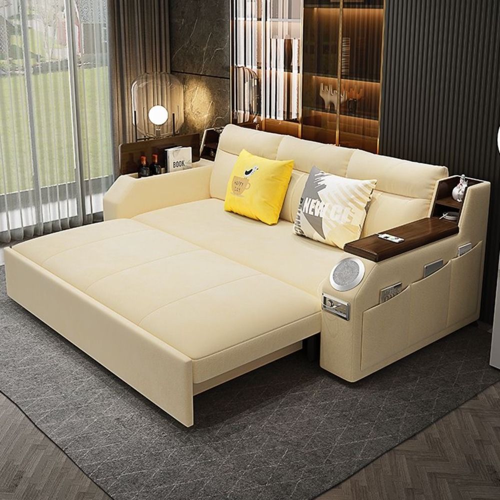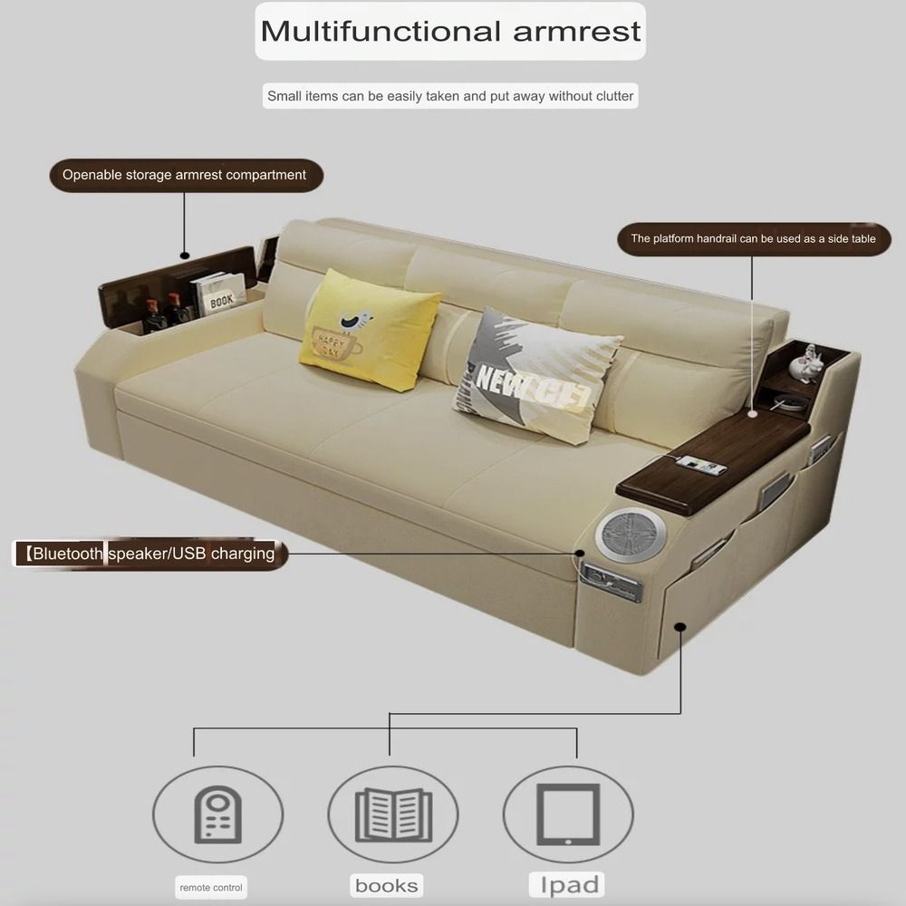 Modern Smart Sofa Bed -Multi Functions -With Bult-in Storage Space - Bluetooth Speaker - USB Ports 210Cm - Off White