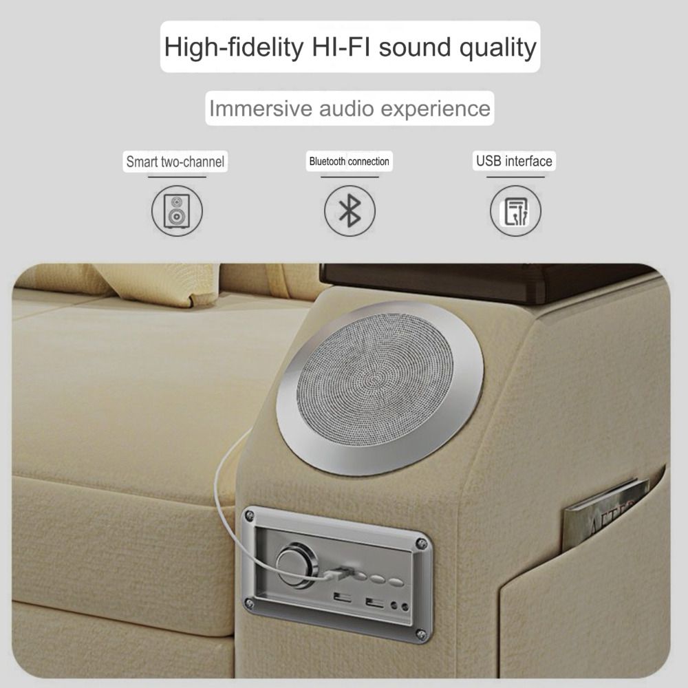 This Sofa seamlessly combines comfort, functionality, and style, Built-in Storage - Bluetooth Speaker - USB Ports - The Sofa It Comes With Two Side Of Sponge one is soft and the other is bit harder to choose what Comfort you
