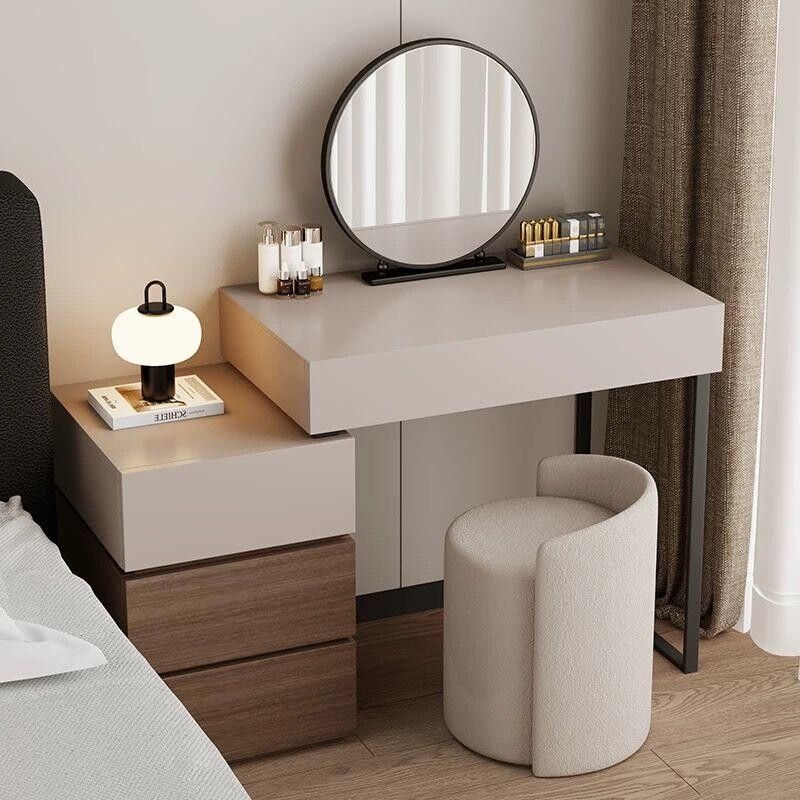 AWD modern vanity dressing table set. The sleek design features a spacious 80 cm tabletop, complemented by a contemporary round mirror that adds depth and elegance to your space.