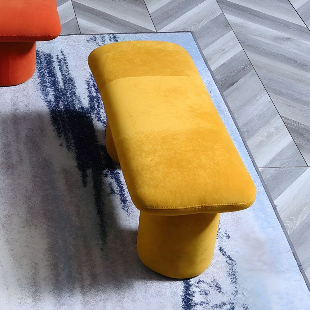 Modern Velvet Sculptural Bench Compact Accent Seat for Bedroom, Living Room 80cm*34cm*42cm Yellow