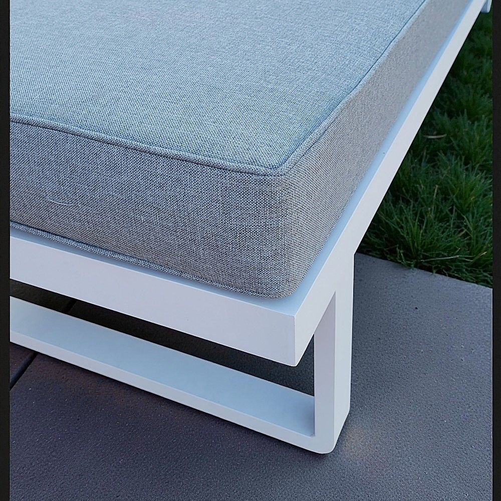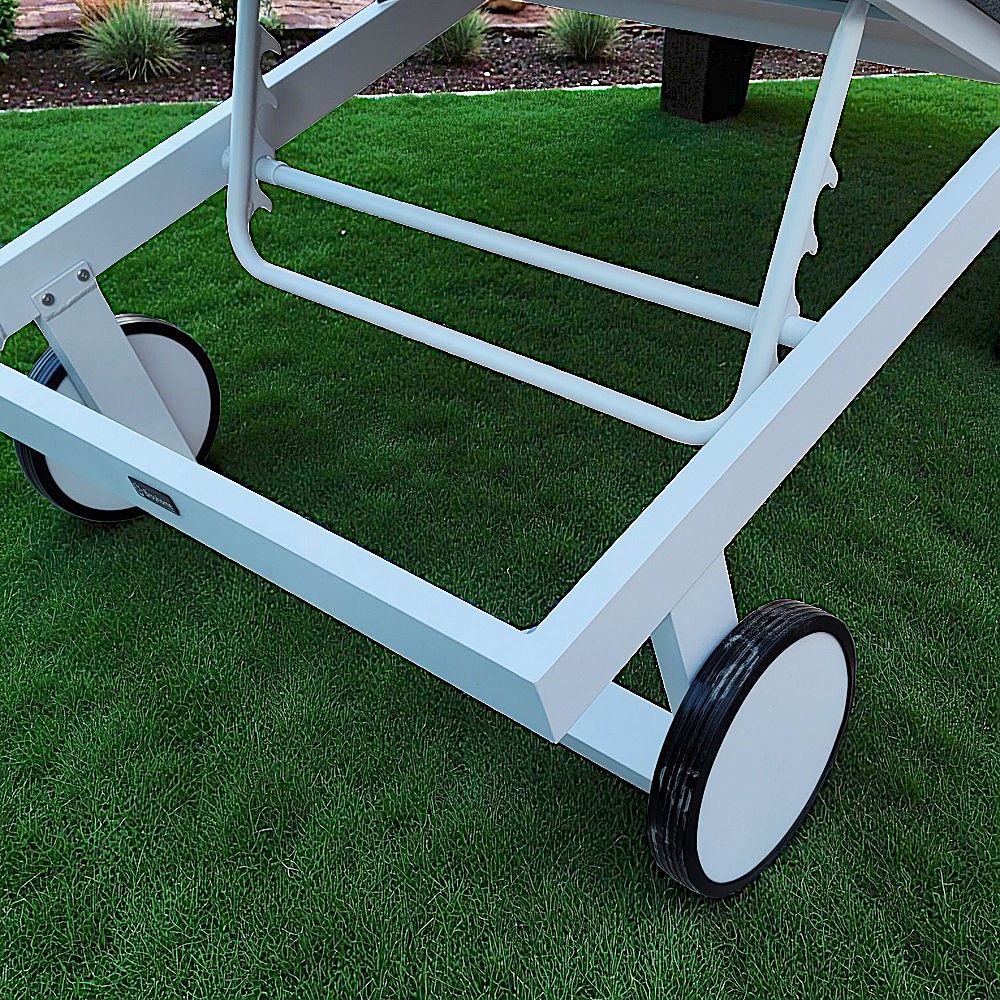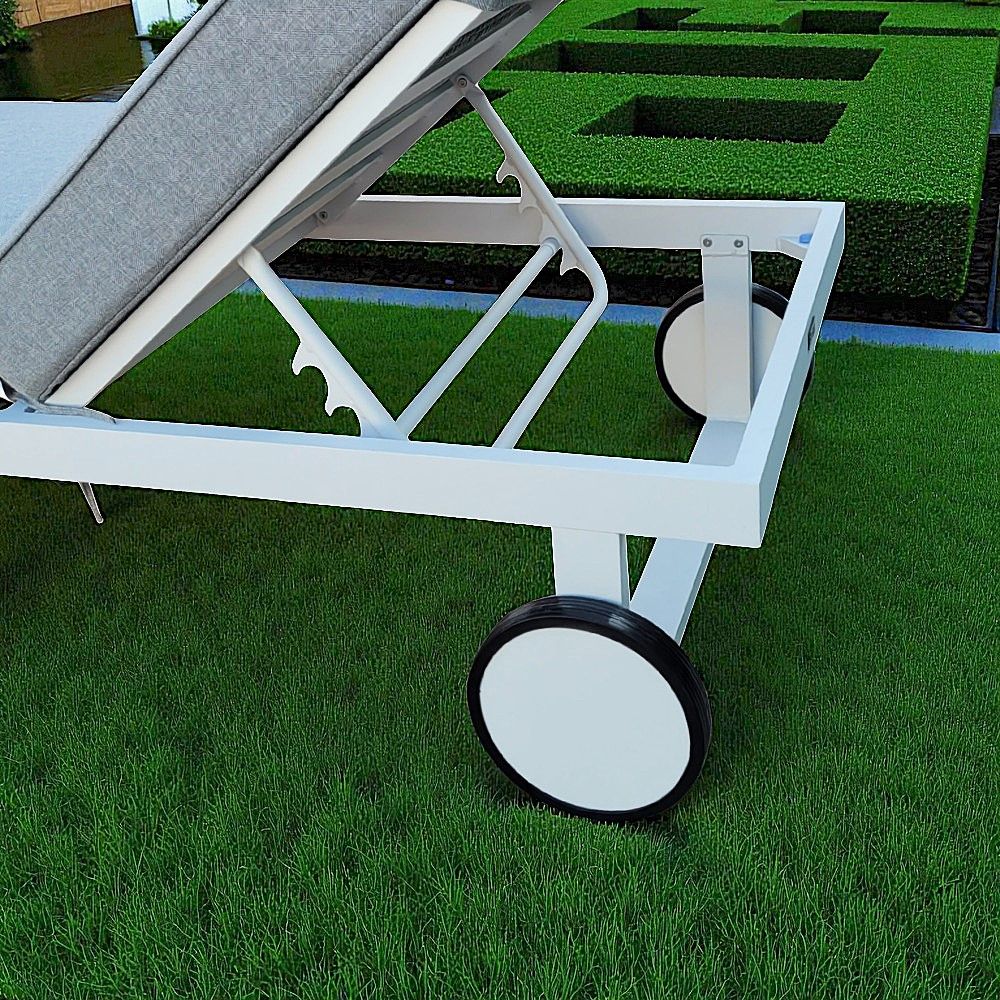 Modern White Aluminium Outdoor Sun Lounger with Wheels – Light Grey Cushions