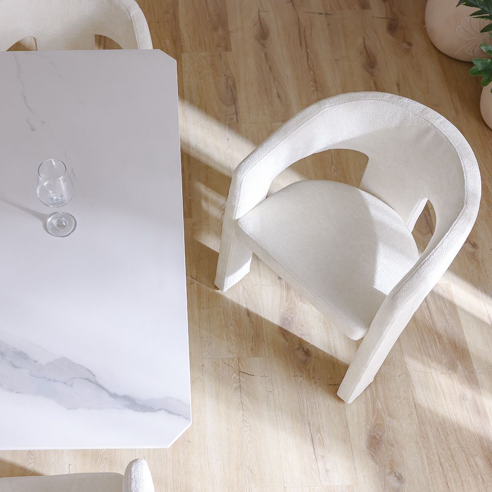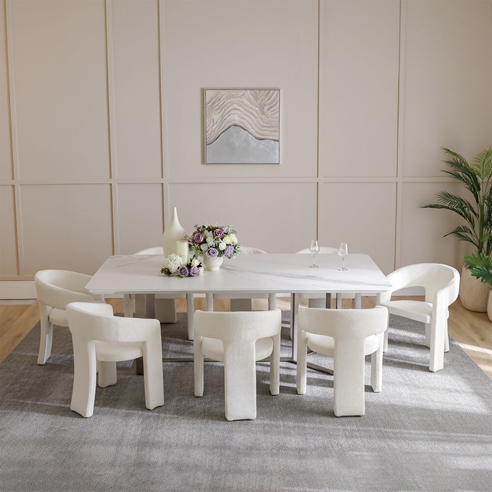 The set comprises a dining table and eight chairs with soft rounded edges.