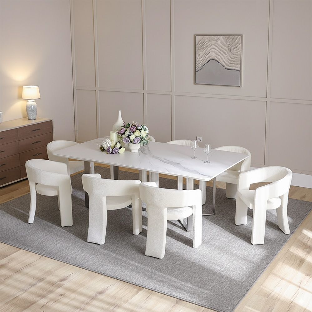 Monarch 1 + 8-Seater Dining Set - White/Brushed Silver - With 2-Year Warranty