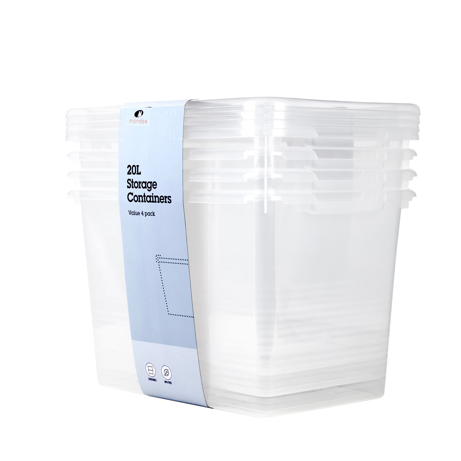 Mondex 4 Piece Polypropylene Storage Box Set - 20L Capacity Each - Transparent