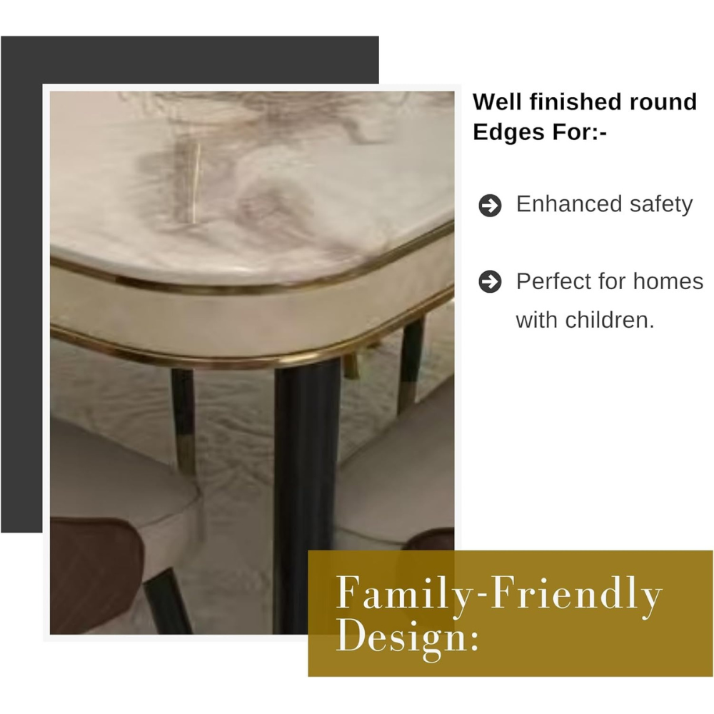 buy with confidence/ Crafted with top-class quality, this marble dining table set features a luxurious marble tabletop, elegant black and golden metal legs, and premium leather chairs — combining durability, comfort, and timeless style for a truly sophisticated dining experience.