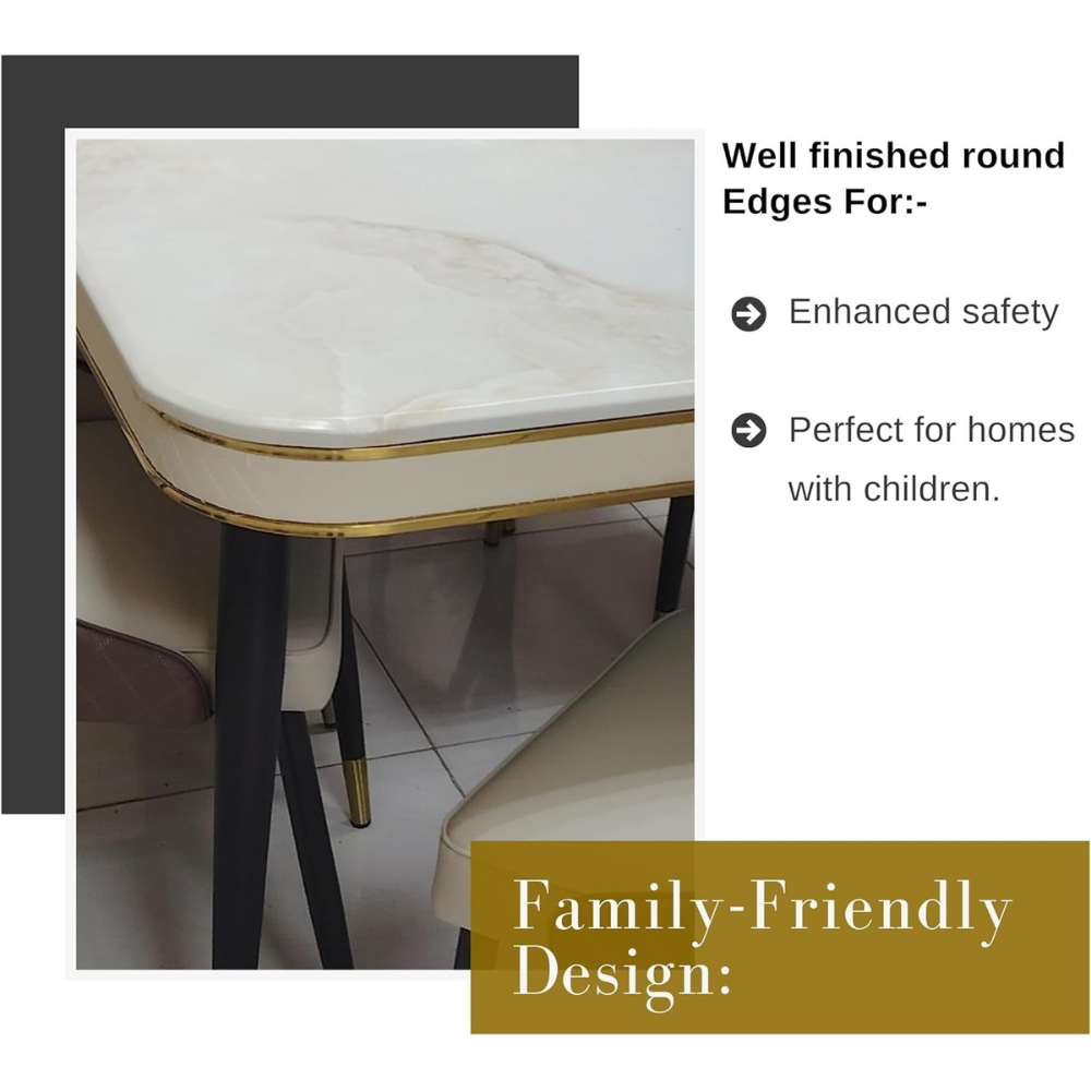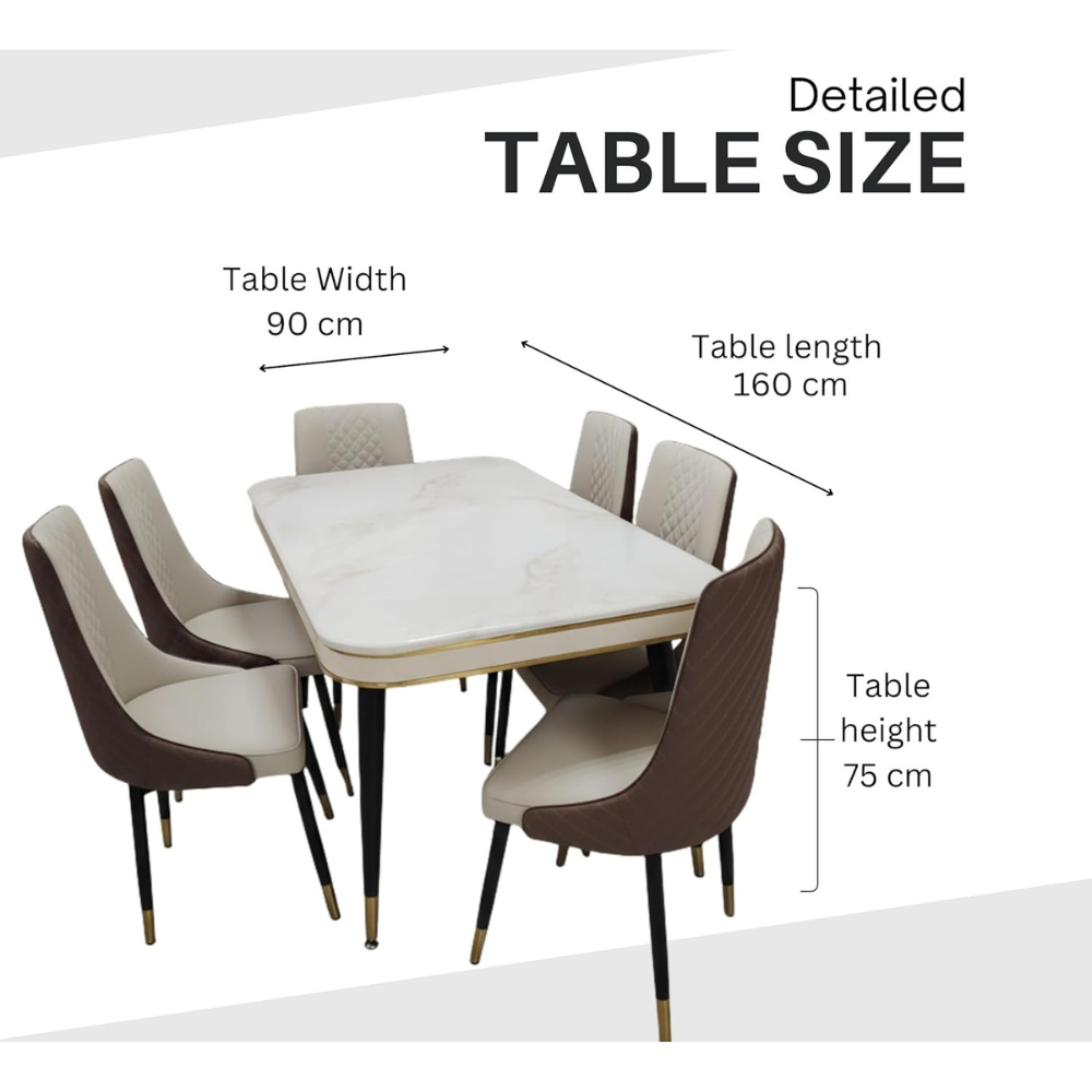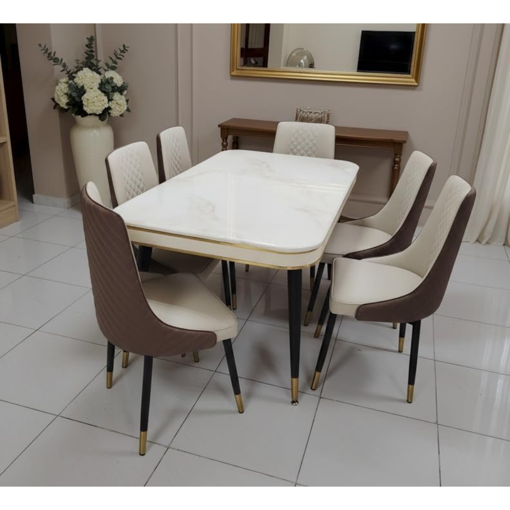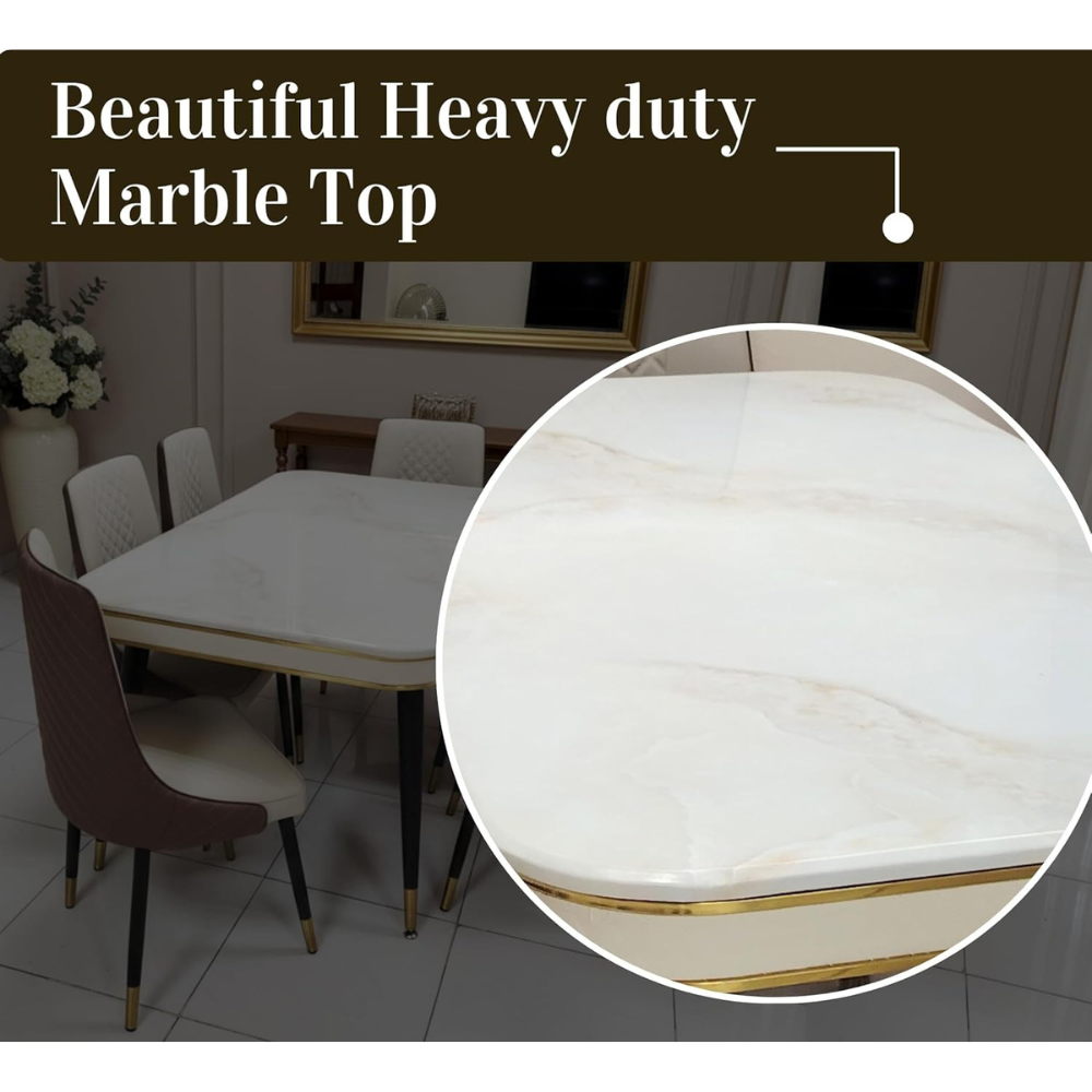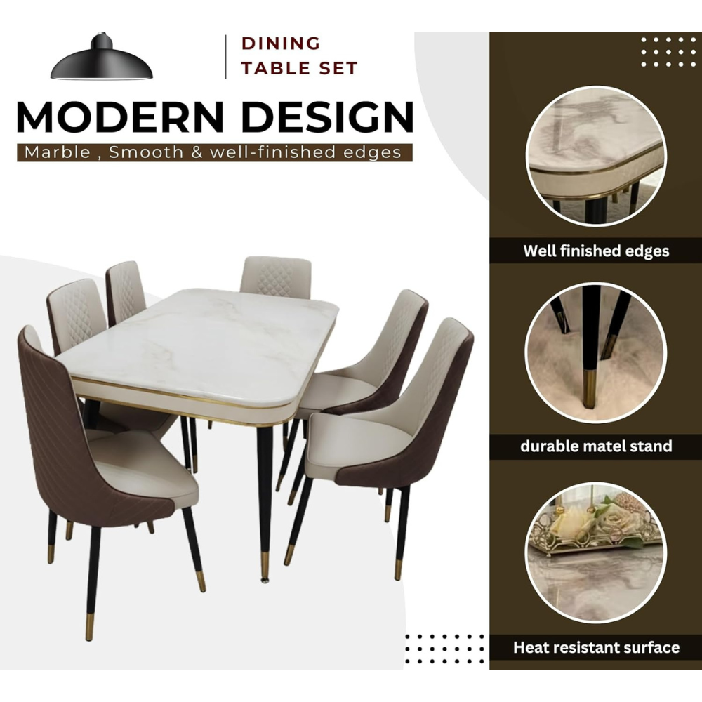 buy with confidence/ Crafted with top-class quality, this marble dining table set features a luxurious marble tabletop, elegant black and golden metal legs, and premium leather chairs — combining durability, comfort, and timeless style for a truly sophisticated dining experience.