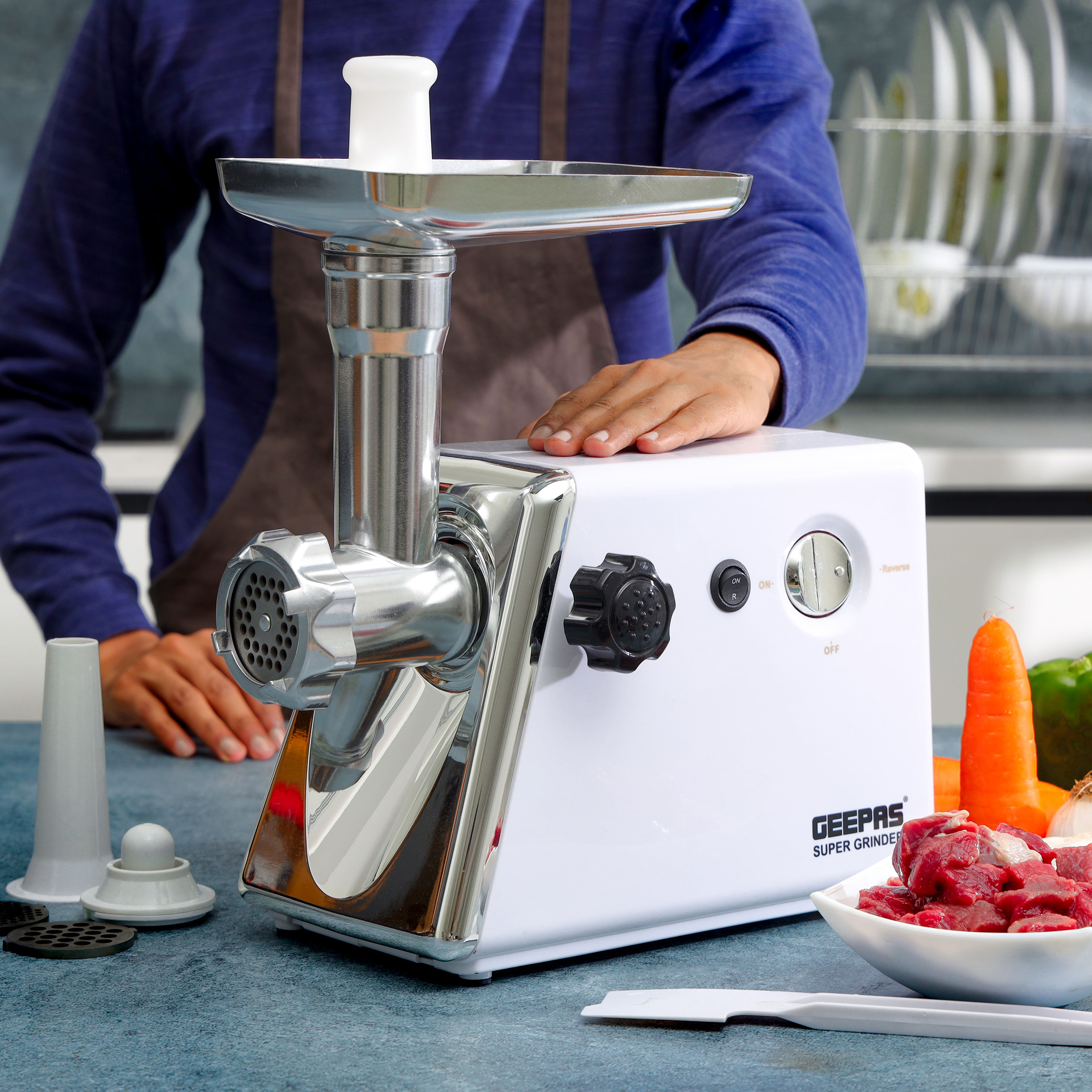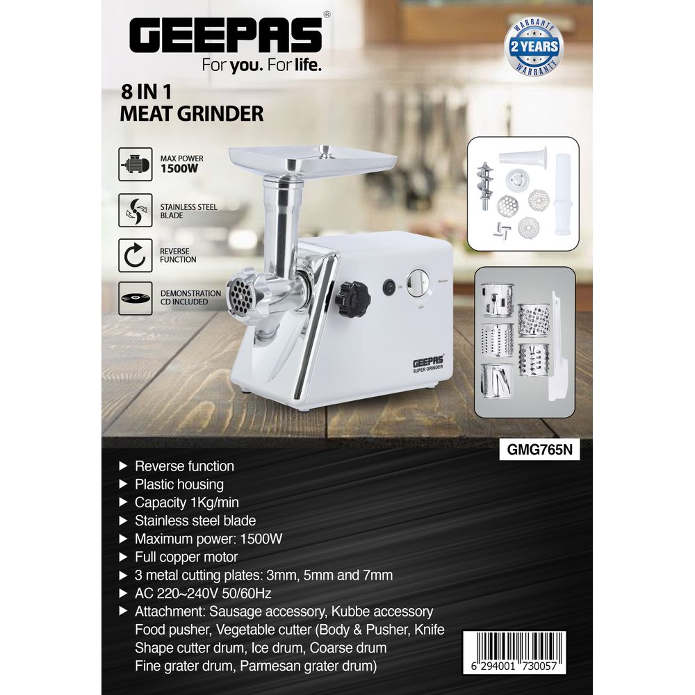 Ideal for preparing meat for nutritious homemade recipes.Multi-Function Usage Including; Mincing Meat, Making Sausages and KubbeThe Electric Mincer comes with 3 stainless steel cutting plates for fine, medium, and coarse grinds of meat, ideal for creating many different textures.