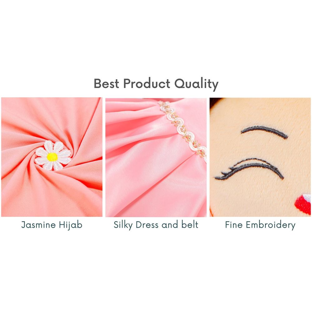 Cute and Stylish Design: Features a removable hijab and dress with a small jasmine detail, making it a charming and fashionable companion for kids.