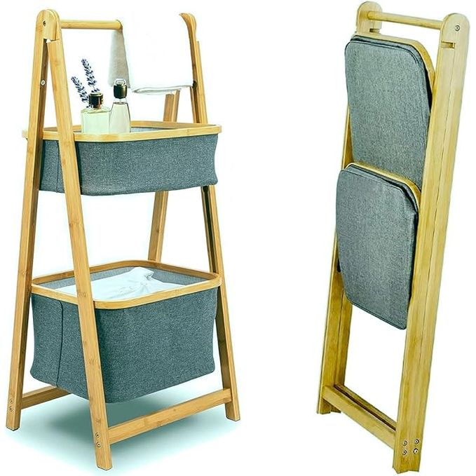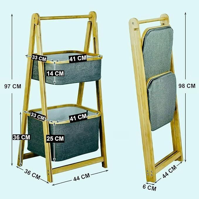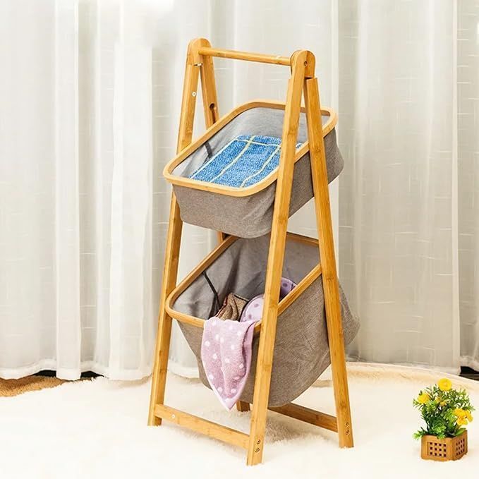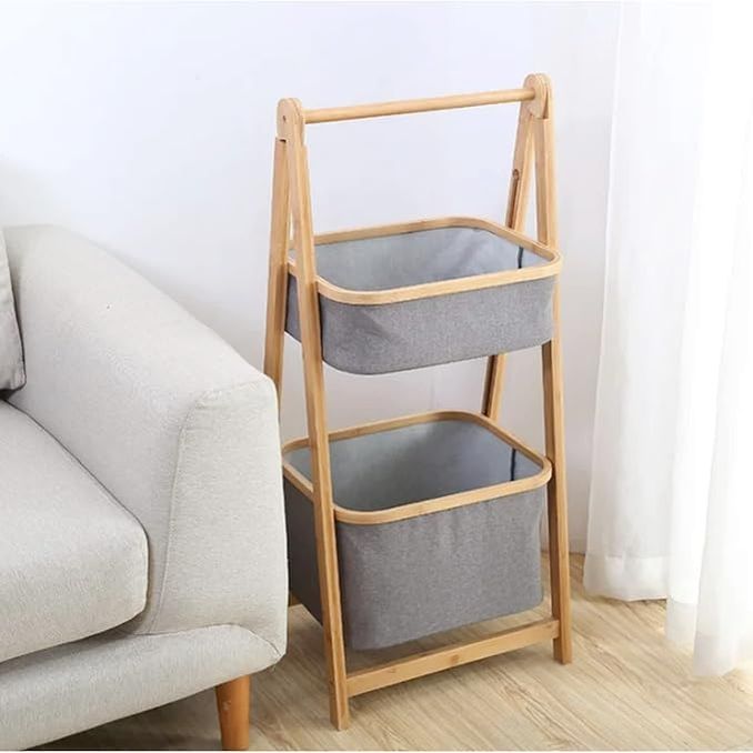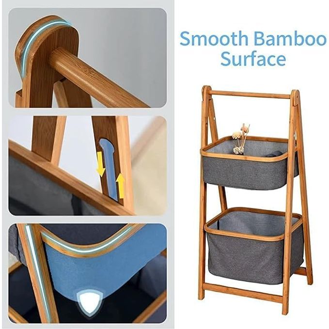 Natural Bamboo Freestanding Laundry Hamper Basket Multipurpose Storage Stand Baskets Organizer Modern Home Organizer Rack Laundry Hampers Baskets Stand Hamper - 2 Tier