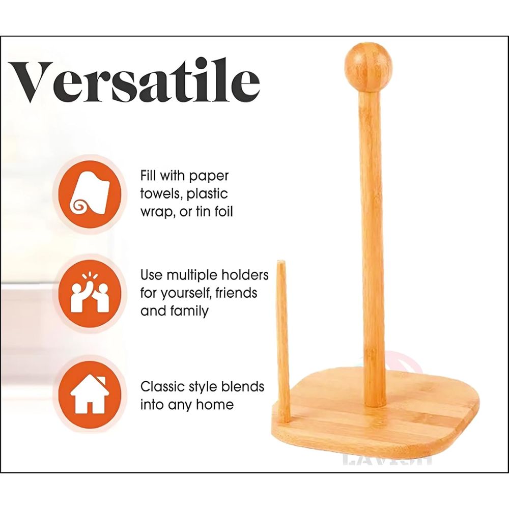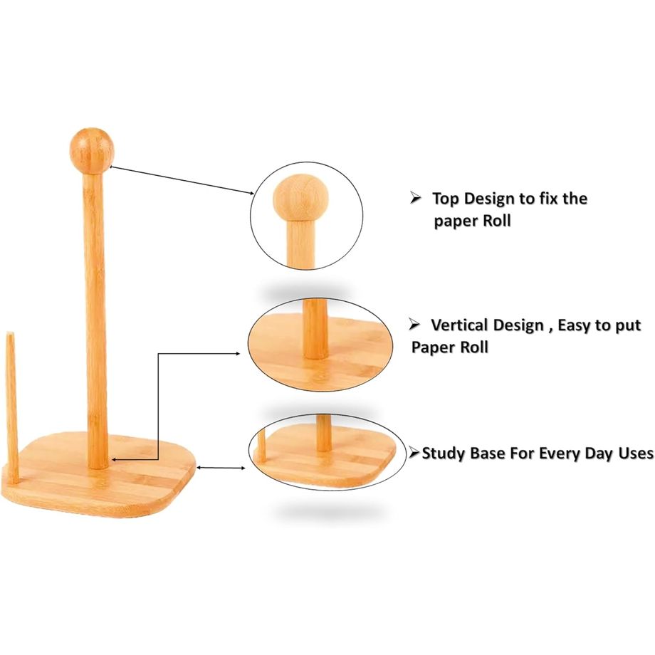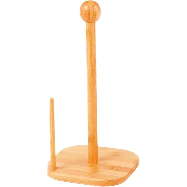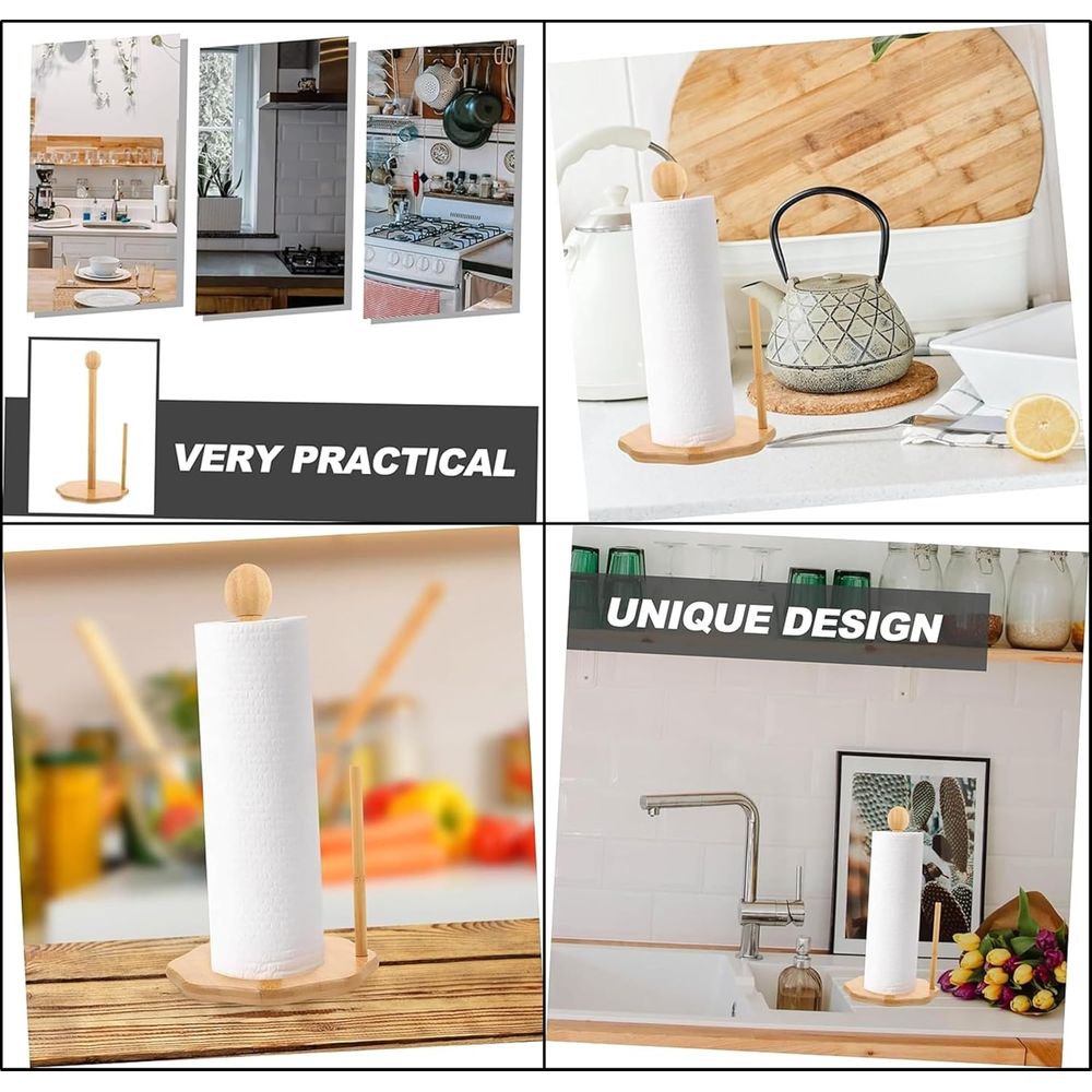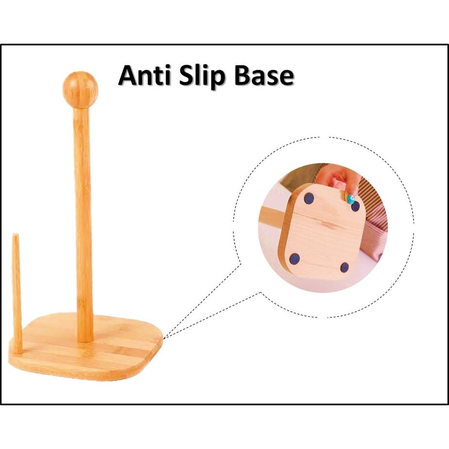 Natural Bamboo Tissue Holder, Tissue Organizer Roll Dispenser, Vertical Standing Paper Roll Holder, Paper Hanger Rack With Non Slip Base For Kitchen,Dining,Living Room (Square Base)