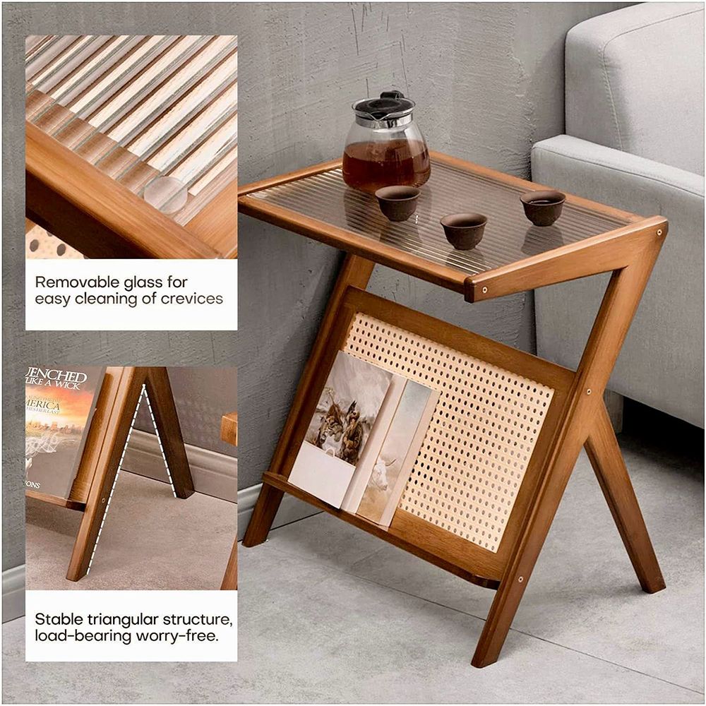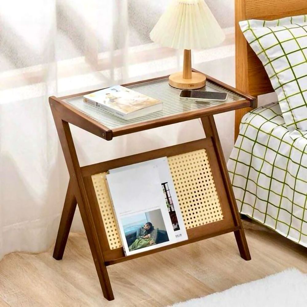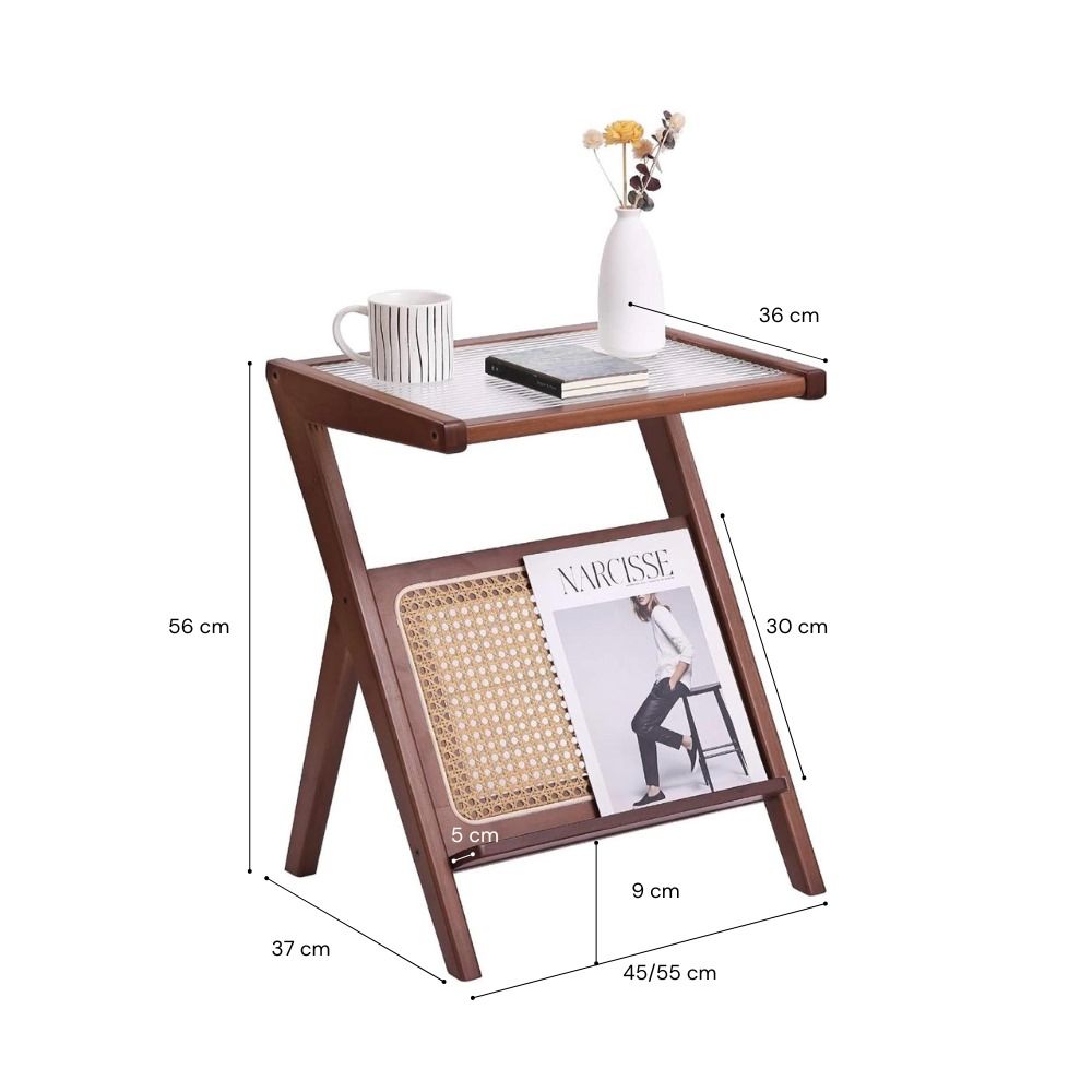 Natural Brown Rattan And Woodside Table By Quesera L45 cm x W37 cm x H56 cm - Brown