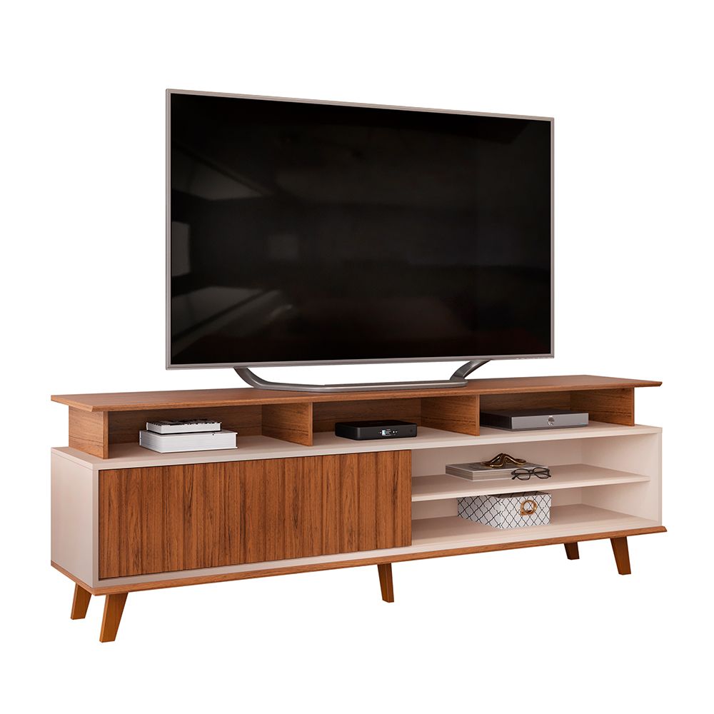 Neeson Tv Unit With Sliding Door And Open Shelves Up To 70 Inch - Brown/Beige
