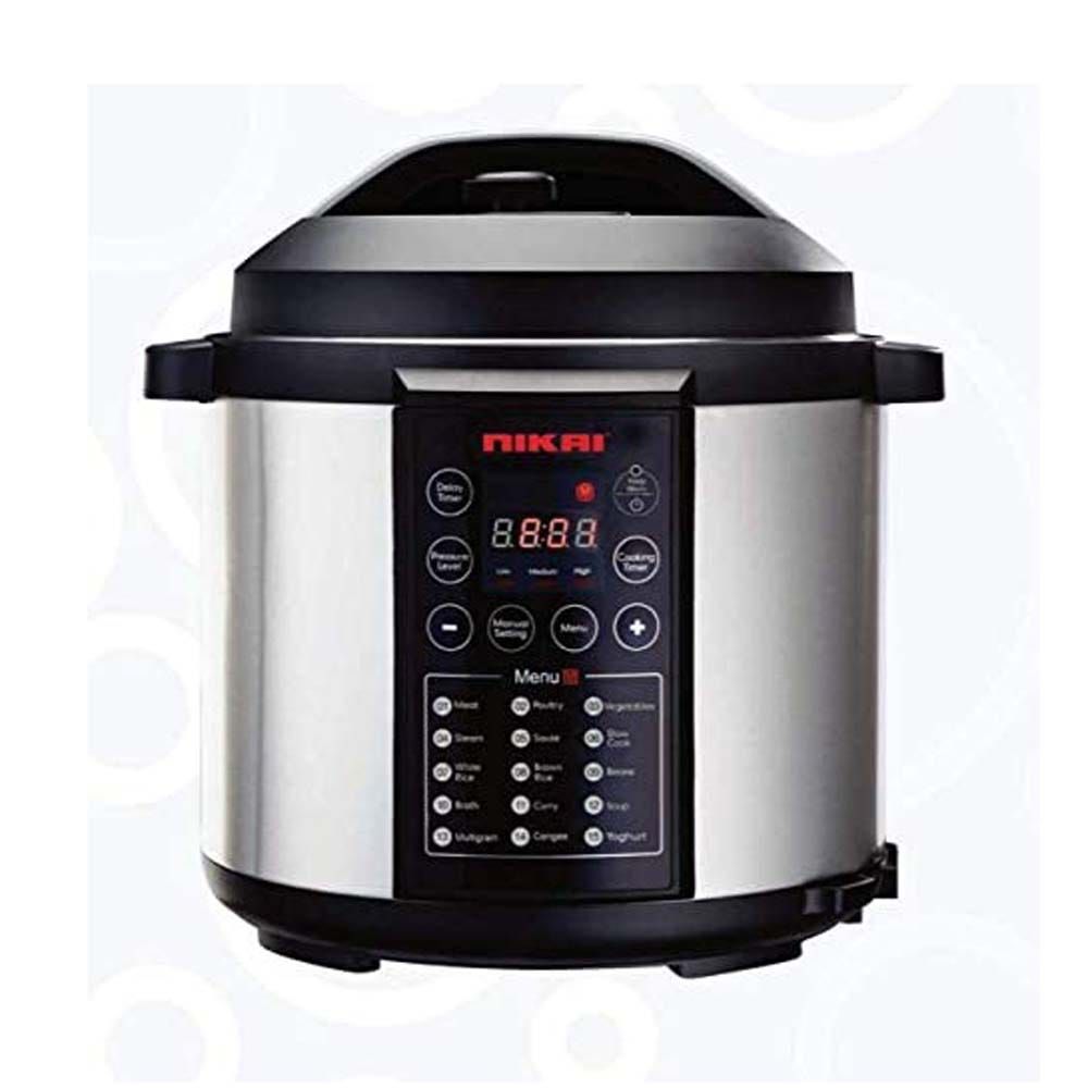 The product Nikai 1000W Digital Pressure Cooker Nep682D1 Black -NEP682D1 images have props used for illustrative purposes. Product Color may vary slightly due to photographic lighting or your screen settings.