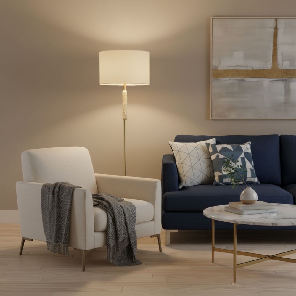 Nordica Faux Travertine Floor Lamp ML256246 D36x155cm Brass Gold E27